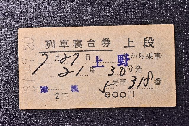 切符★硬券★上野~列車寝台券★寝台急行 津軽★観光会館★600円★昭和37★3T