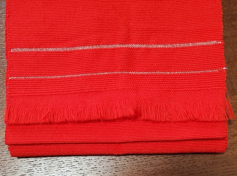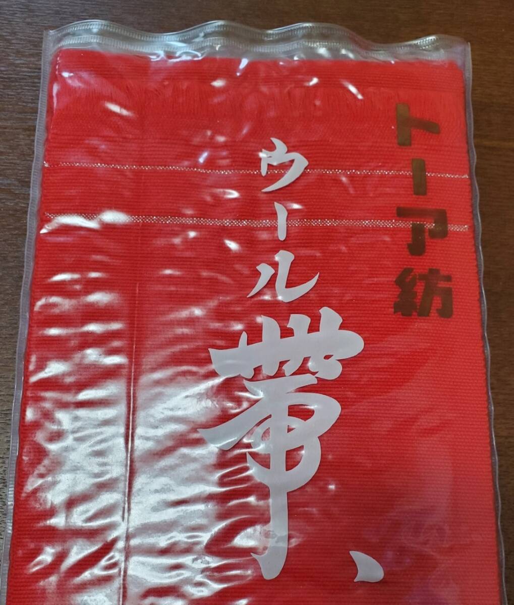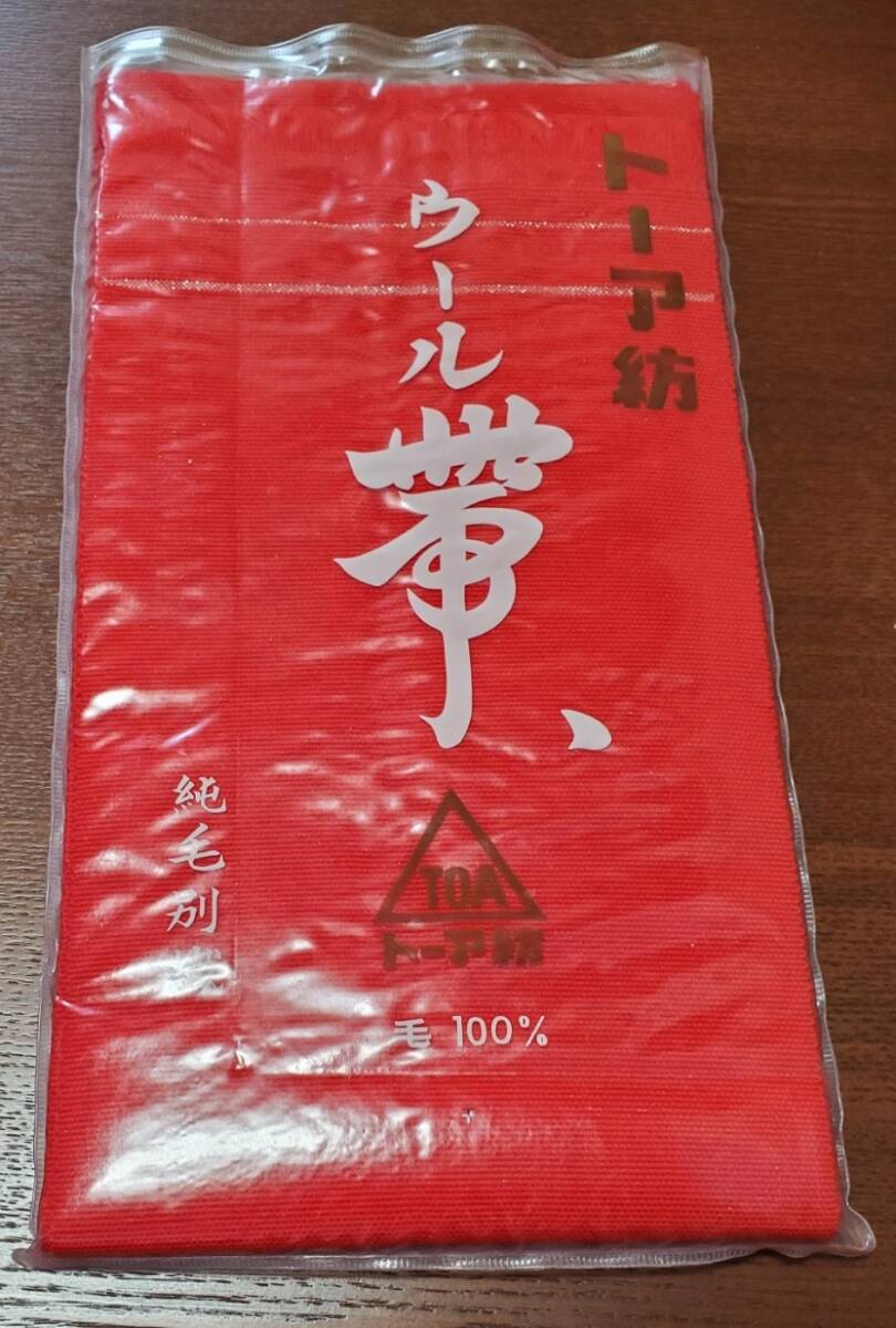 ウール帯 赤 ウール100% 純毛別織 320㎝ 幅14,5㎝ 未使用品 保管品