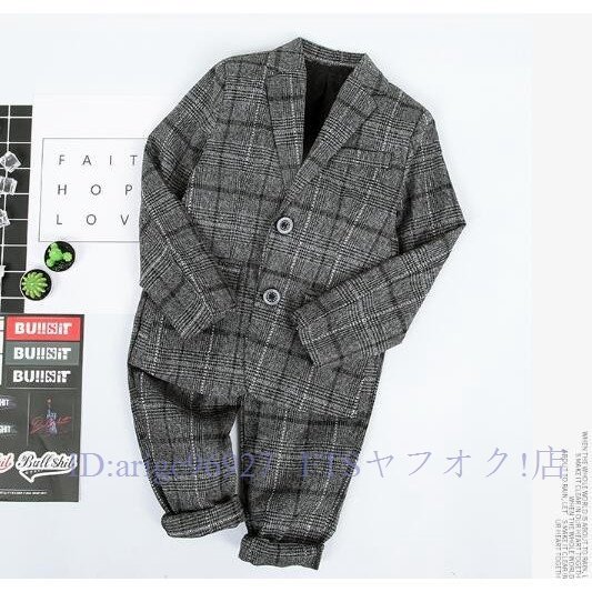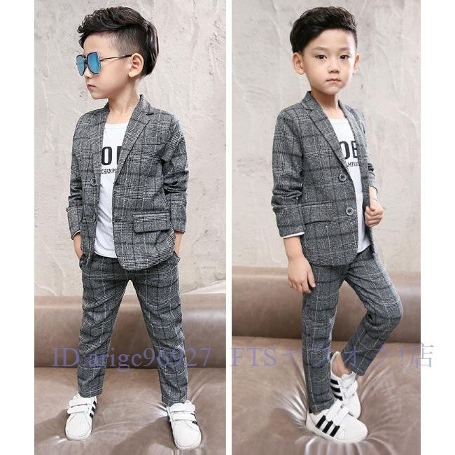 A6939★春秋子供 男の子 ファッションな フォーマル スーツ チェック柄 ボーイズ 紳士 上下セット 入園式 お宮参り 結婚式 グレー