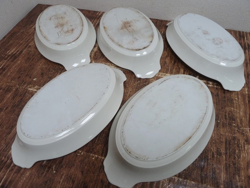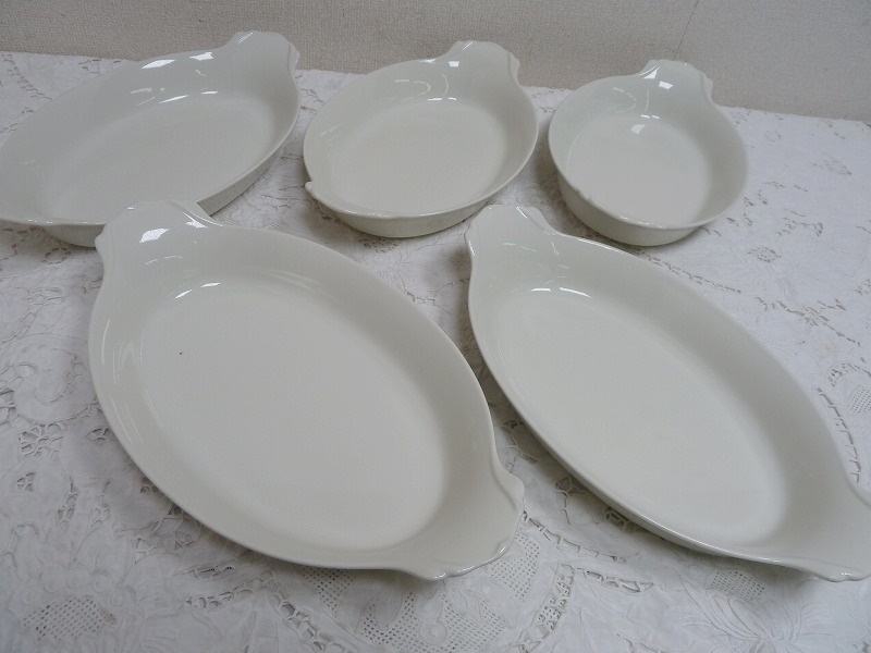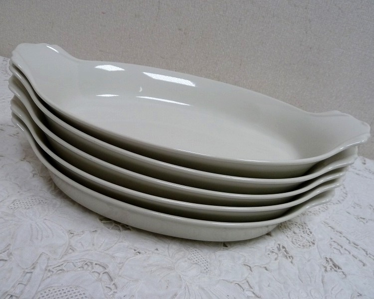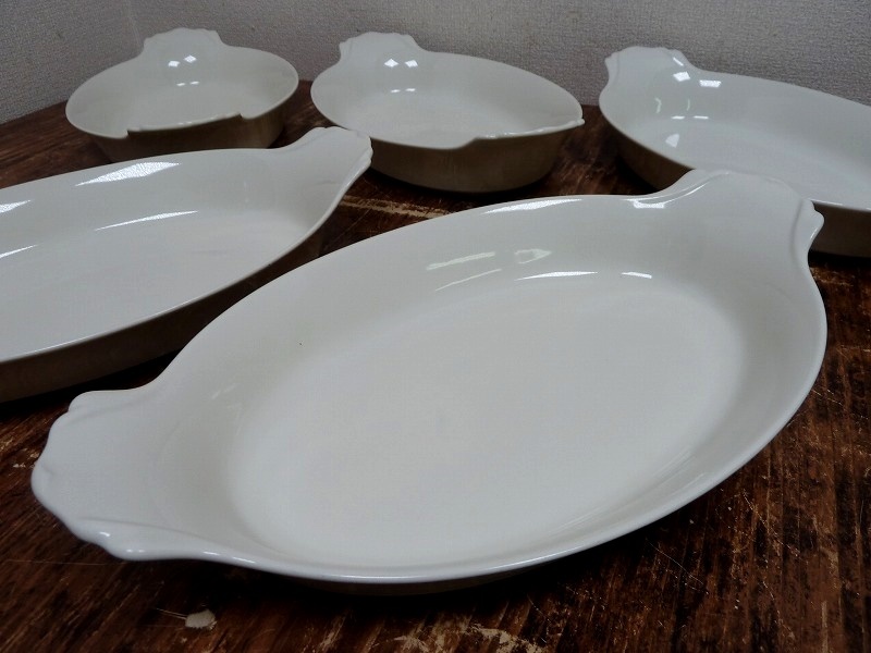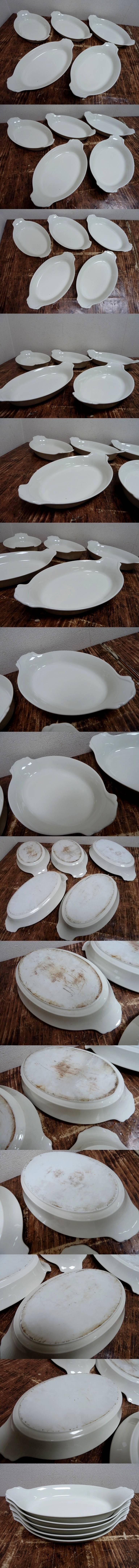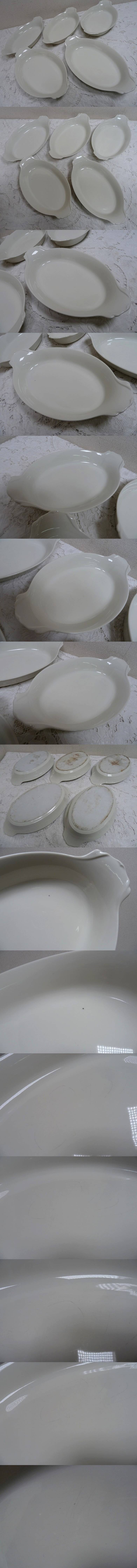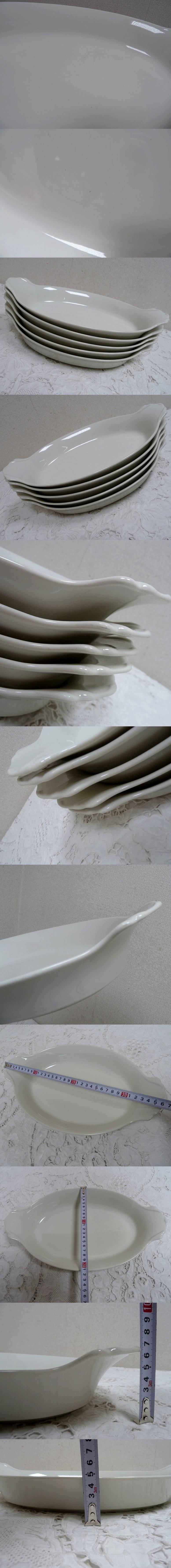 (☆BM)陶器製/オーバル ホワイト 5点セット 横幅36.5㎝ 無地 白 グラタン/コキール/オーブン/プレート 深皿 業務用 ビュッフェ 洋食器