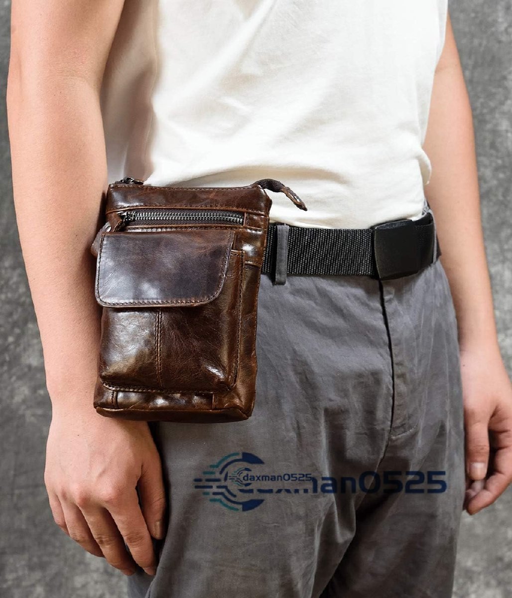 ウエストバッグ メンズ 本革 3way ベルトポーチ レザー ウエストポーチ ショルダーバッグ 小型 携帯ポーチ カラビナ付き 財布収納