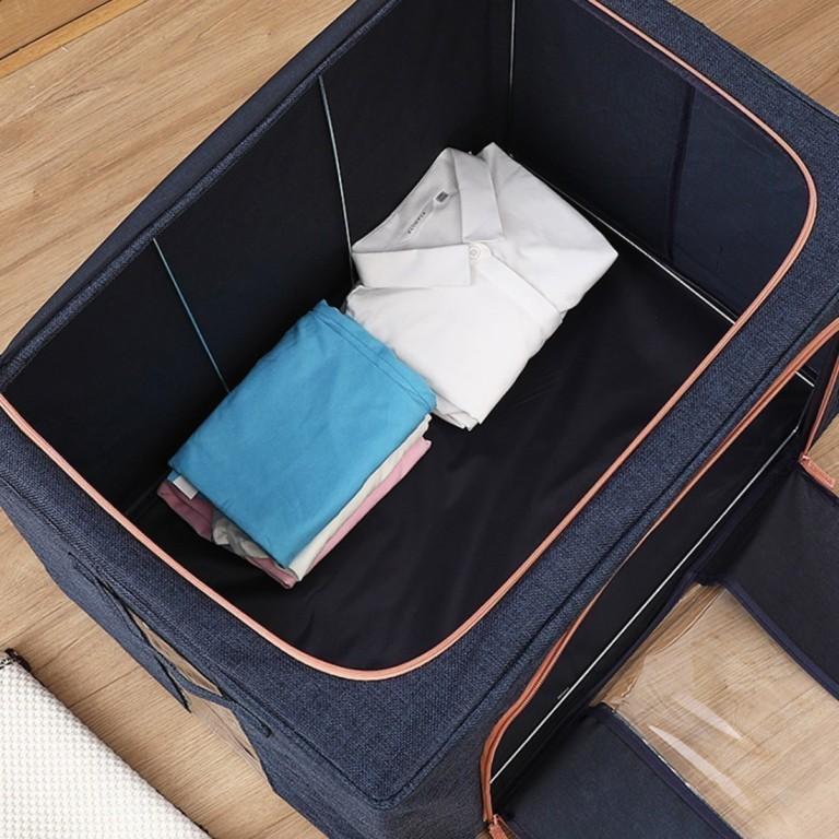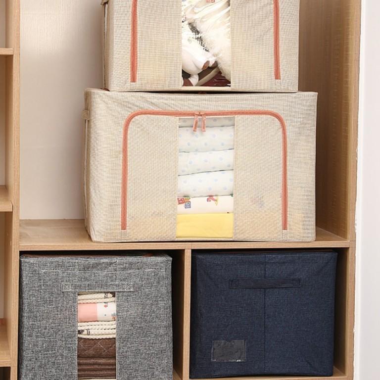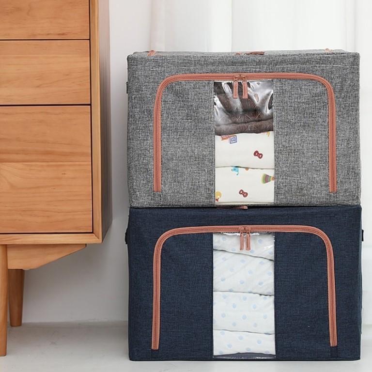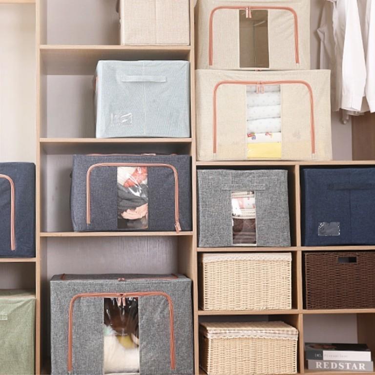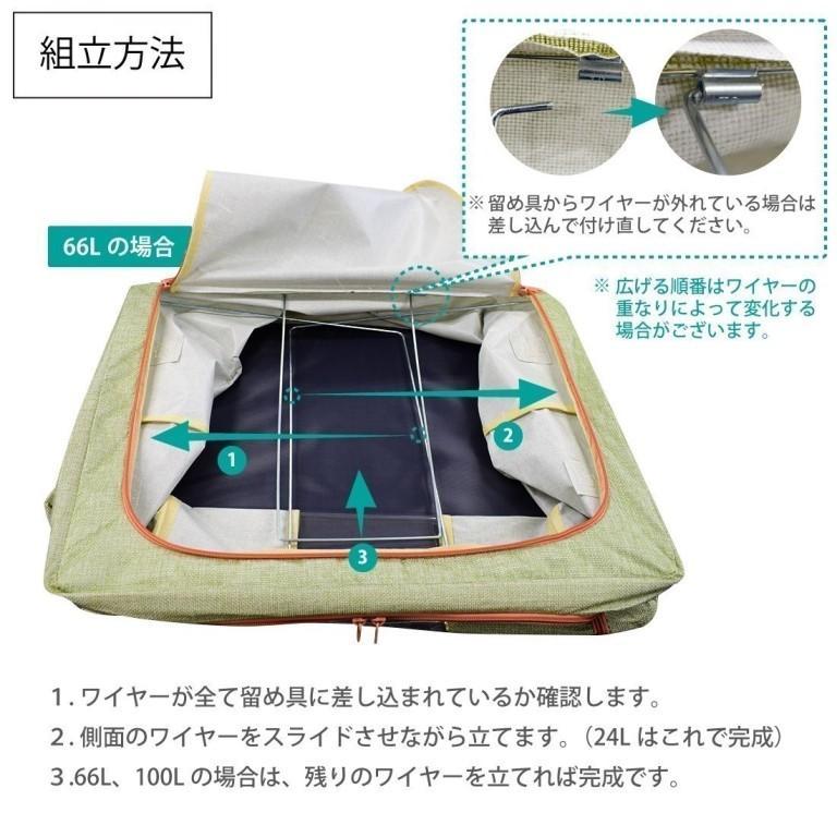 型崩れしにくいワイヤーでしっかり支えているので、積み重ねて使うことができます。上部と前面にファスナーがあるので、積み重ねたまま前面から出し入れができるのでとても便利。内側に防湿加工がされていて通気性が良く、湿気やホコリから守りながら保管できます。ホコリの溜まりやすい押入れ収納に最適。