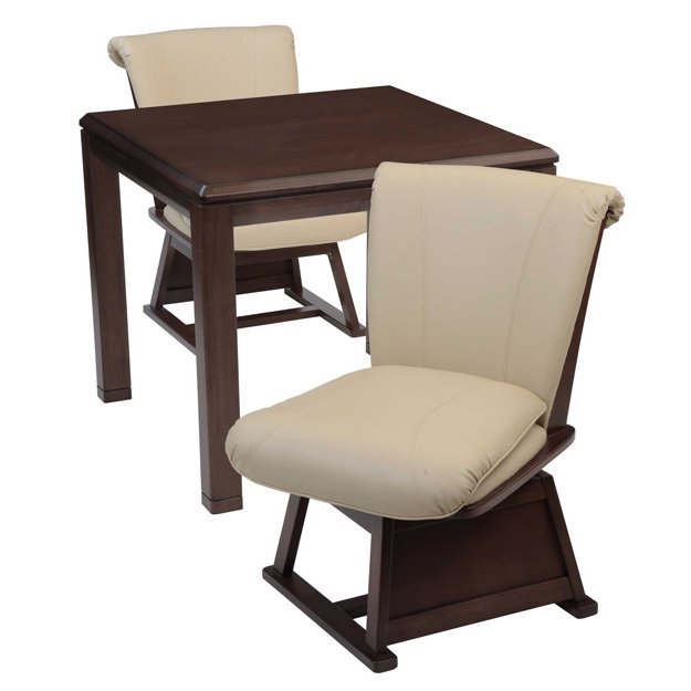 肘掛無こたつ椅子 回転椅子 2脚セット ハイタイプこたつ用 ダイニングチェア ダークブラウン色 tubaki 食堂椅子シンプルで落ち着いた雰囲気のハイタイプこたつ用ダイニングチェアー。スキー足仕様で、座面回転式の肘掛無しこたつ椅子です。立ち座りが楽で、膝の痛むシルバーの方にも最適です。◇サイズ:幅53×奥行72×高さ79×座面高42センチ◇構造部材:天然木ラバーウッド◇張り生地:合成皮革(PVC)◇組立式こちらの商品はご注文いただいてから1日~2日(土日除く)での発送となります☆落札、ご入金確認後 1~2日にて発送いたします 追加納期のかかるものは商品ページに記載いたしております よろしくお願いいたします。