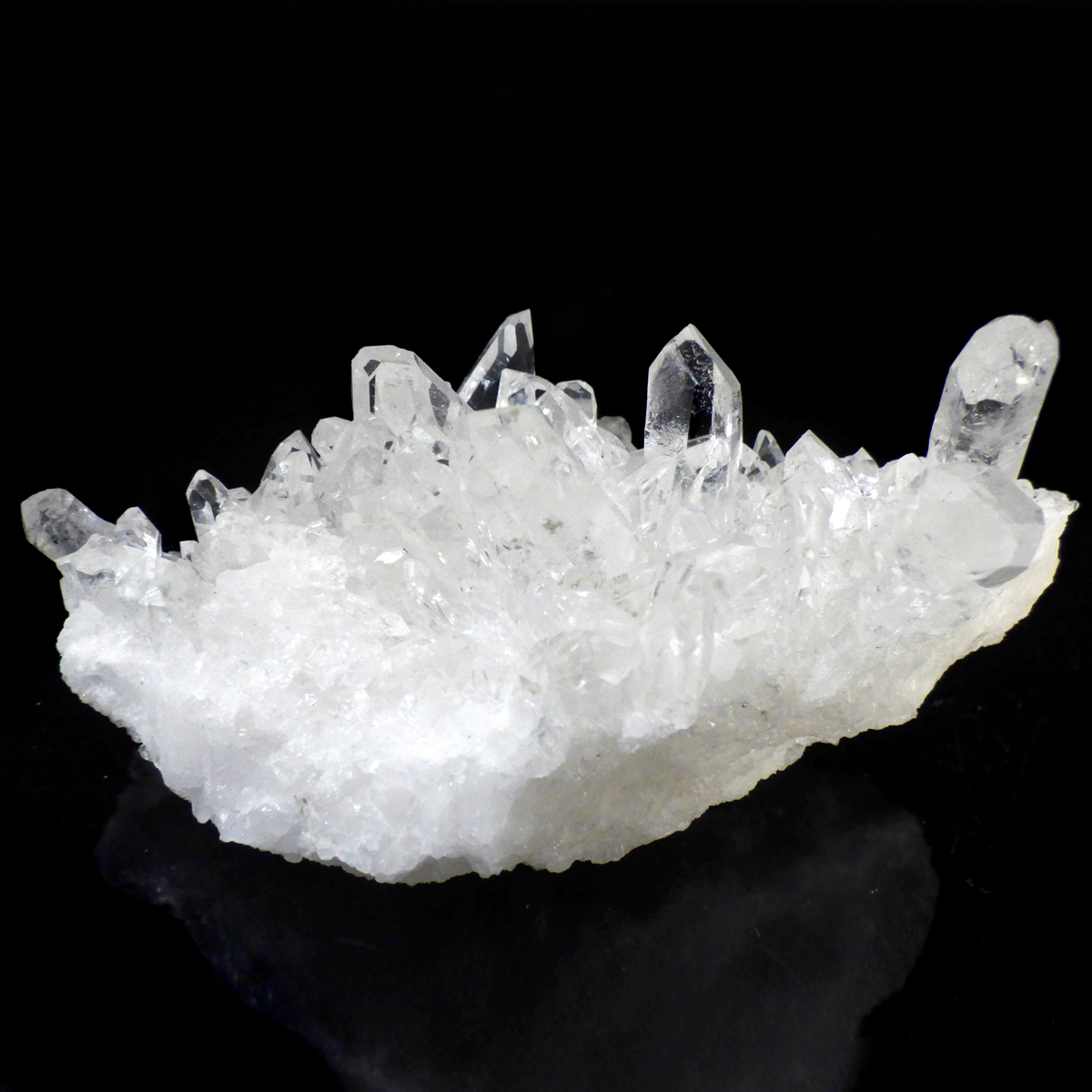 【水晶】すべてのパワーストーンの基本といわれる石です。生活空間にこのクラスターを置くとマイナスエネルギーを弾きとばして気の流れを正常化してくれます。パワーストーンのアクセサリーの浄化や美しい開運インテリアとして最適です。