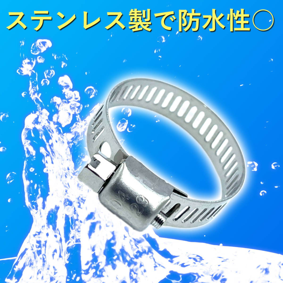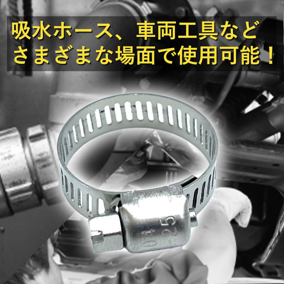 ・強固なネジ固定ため結束力に優れています。また、調整可能な対応サイズが豊富で自動車の燃料ホースや水道ホースなどホースクランプとして汎用性に優れています。