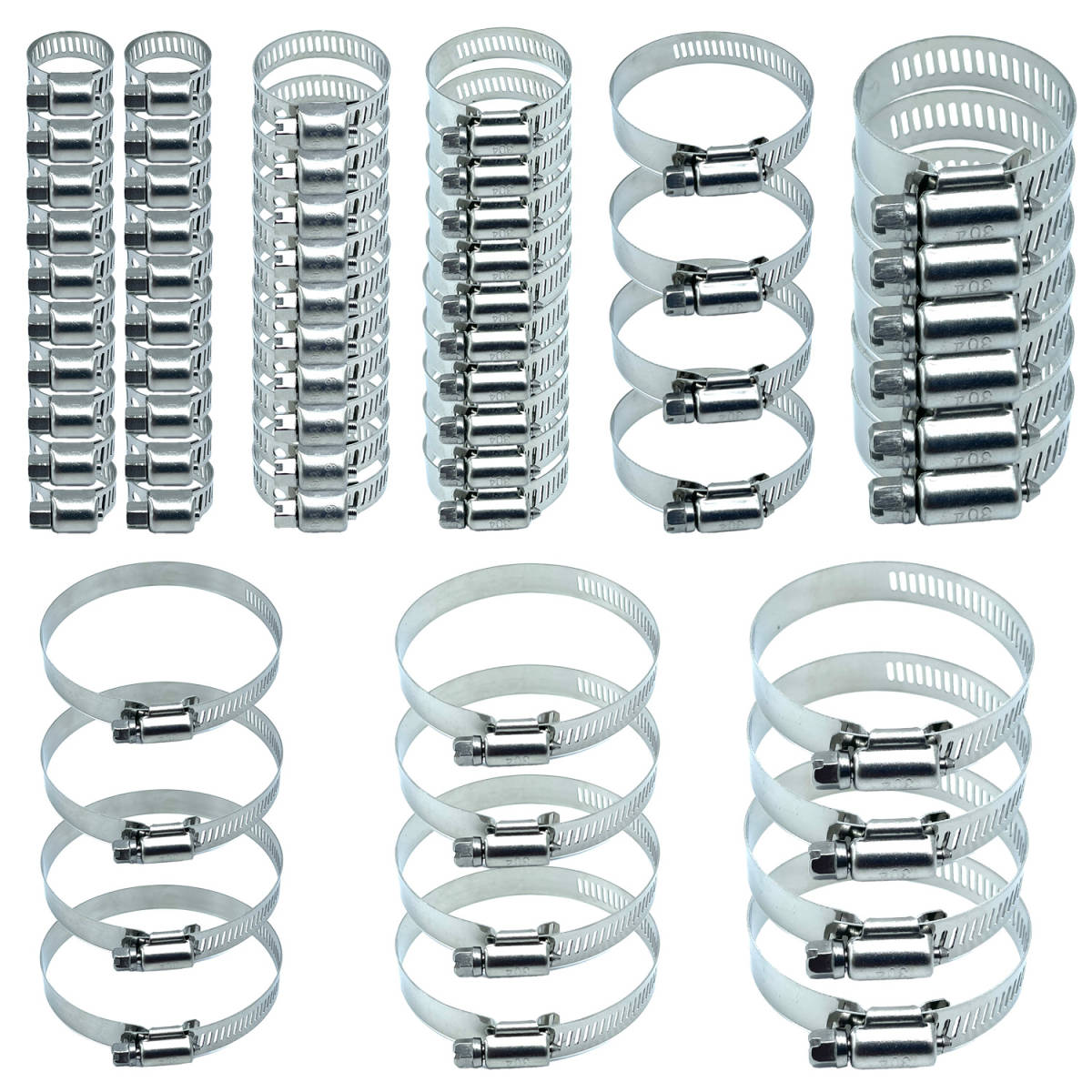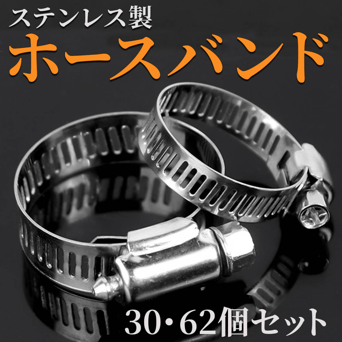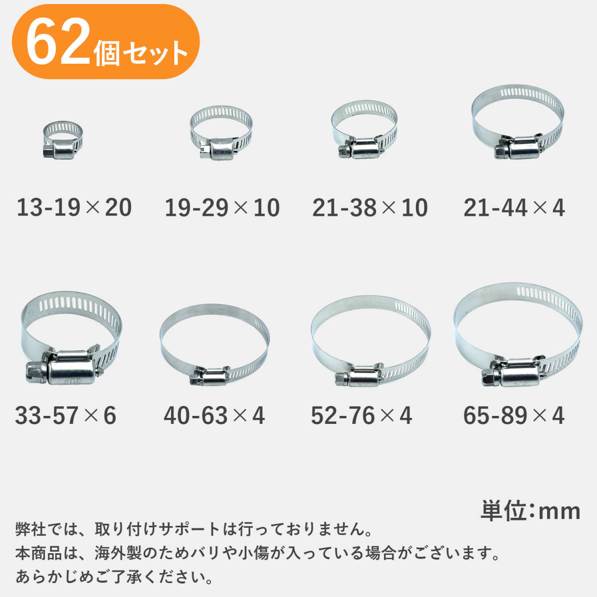 ホースバンド リング クランプ セット ステンレス製 ネジ 固定 金具 水道 自動車 燃料ホース 調整可 結束 6-51 mm 対応 62個