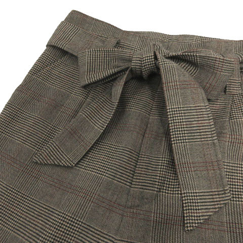 ダイアグラム グレースコンチネンタル パンツ ストレート ワイド リボンベルト ストレッチ ウール混 グレンチェック 黒 ベージュ 茶 36