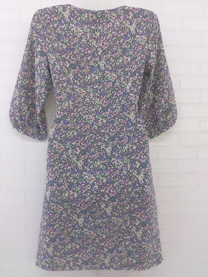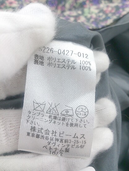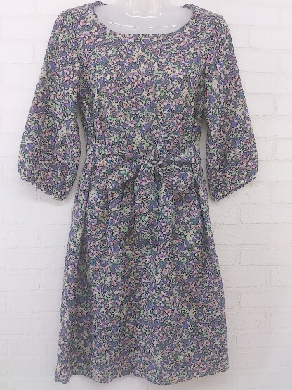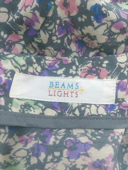 ◇ BEAMS LIGHTS ビームス ライツ ボタニカル 七分袖 ミニ ワンピース サイズ36 ネイビー パープル マルチ レディース P