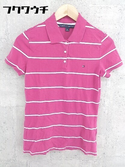 ◇ TOMMY HILFIGER トミーヒルフィガー ボーダー 半袖 ポロシャツ サイズS/P ピンク ホワイト レディース