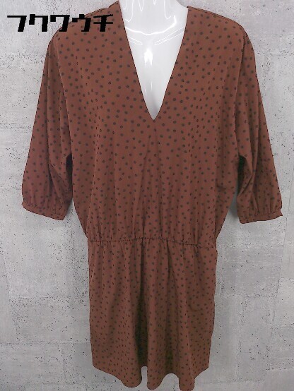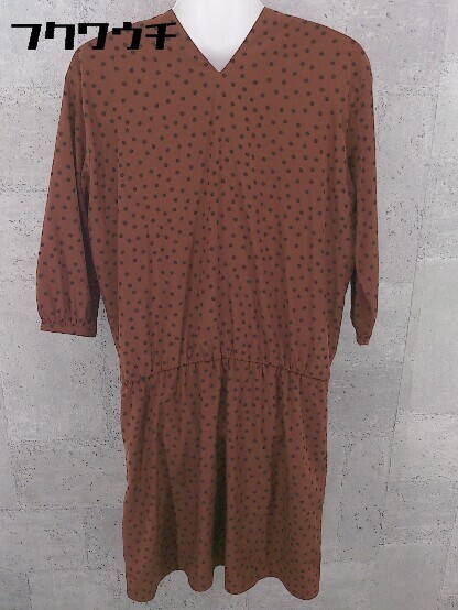 ◇ URBAN RESEARCH アーバンリサーチ 水玉 ドット Vネック 長袖 膝丈 ワンピース サイズF ブラウン ブラック レディース