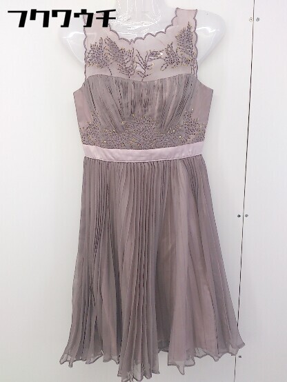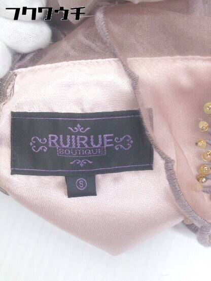 ◇ RUIRUE BOUTIQUE スパンコール ビーズ 刺繍 シアー ノースリーブ 膝丈 ワンピース サイズS ピンクベージュ レディース