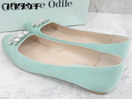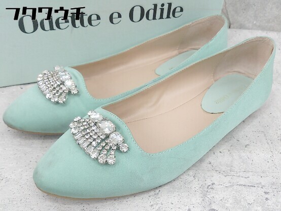 ◇ ◎ Odette e Odile UNITED ARROWS ビジュー フラット パンプス シューズ サイズ24cm グリーン レディース