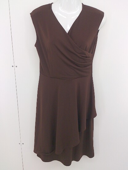 ◇ TALBOTS タルボット ジャージ素材 カシュクール フレンチスリーブ 膝丈 ワンピース サイズS ブラウン レディース