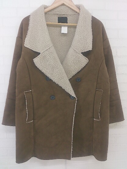 ■ KBF ケービーエフ URBAN RESEARCH ムートン調 長袖 ジャケット コート サイズF ブラウン オフホワイト系 レディース P