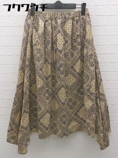 ◇ BEAMS HEART ビームスハート ペイズリー柄 膝下丈 ギャザー スカート ベージュ ネイビー レディース