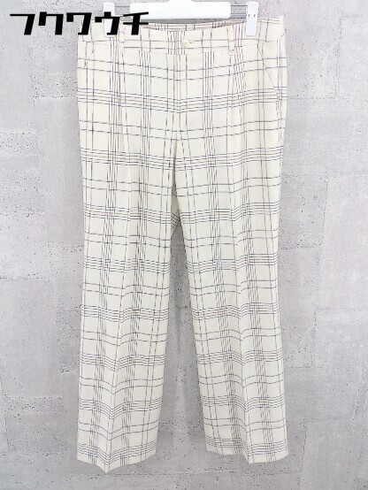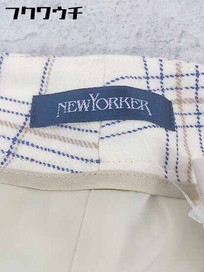 ◇ NEWYORKER ニューヨーカー チェック ワイド パンツ サイズ11 クリームベージュ ネイビー レディース