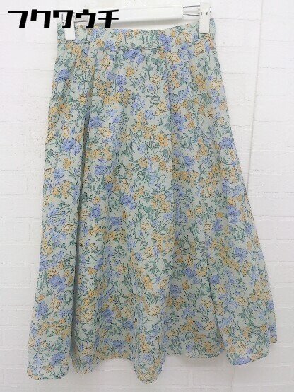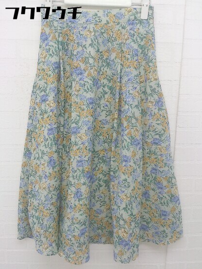 ◇ Techichi テチチ 花柄 フラワー サイドジップ 膝下丈 ギャザー スカート サイズM グリーン マルチ レディース