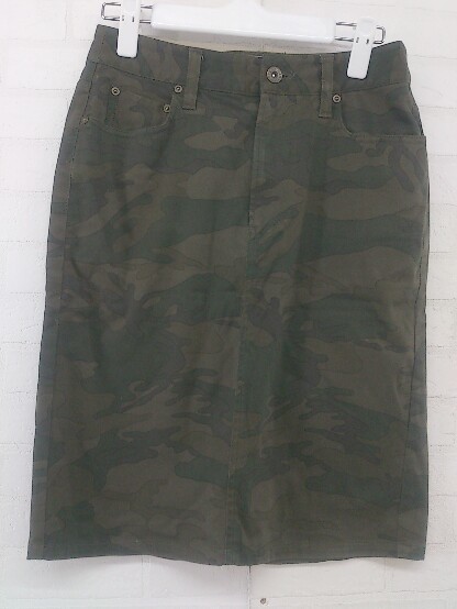 ◇ Spick & Span スピック アンド スパン 迷彩 カモフラ ストレッチ 膝丈 タイト スカート サイズ38 カーキ系 レディース P