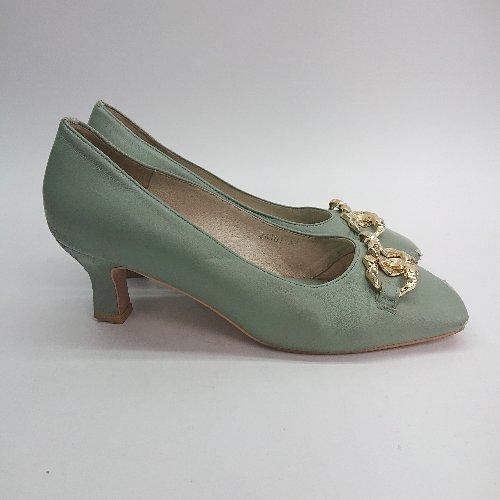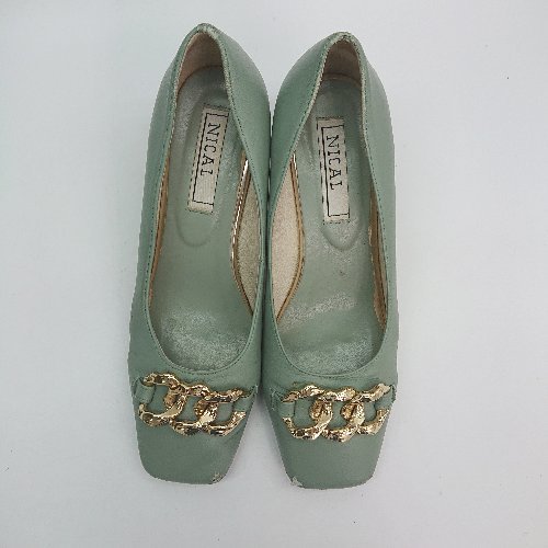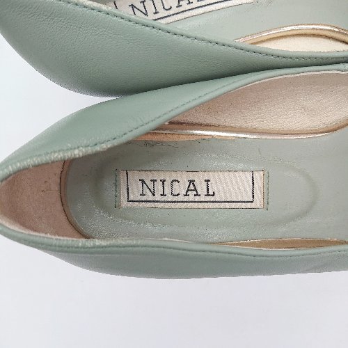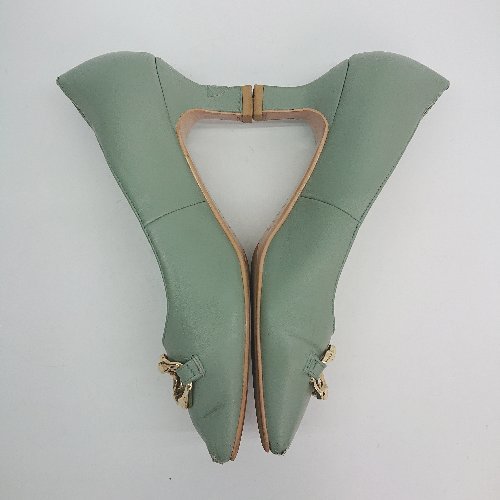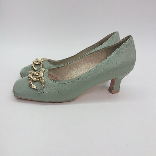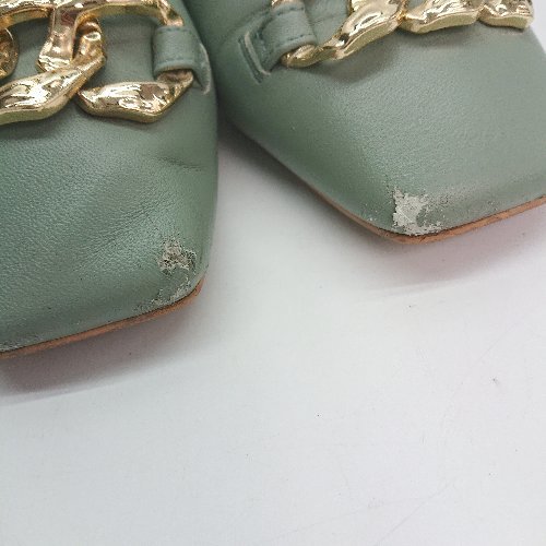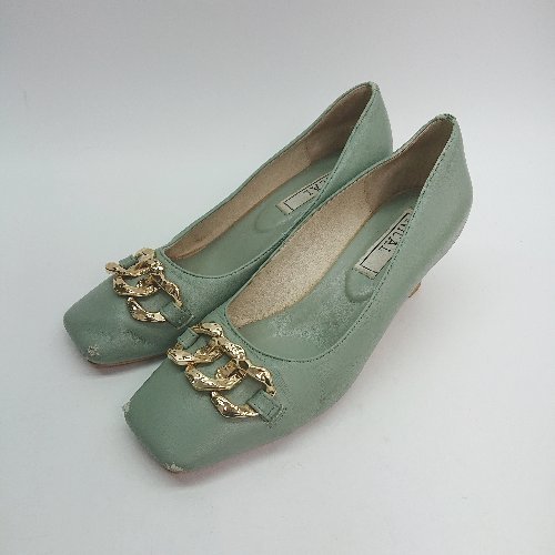 ◇ nical スクエアトゥ チェーン エレガント カジュアル 高級感 パンプス サイズ37 グリーン レディース E