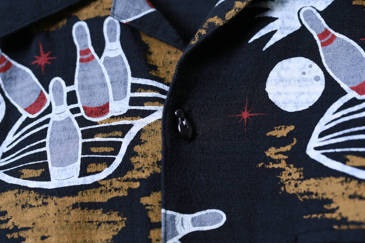 フロントはボーリングモチーフ、背中には英字のプリントが見られます。