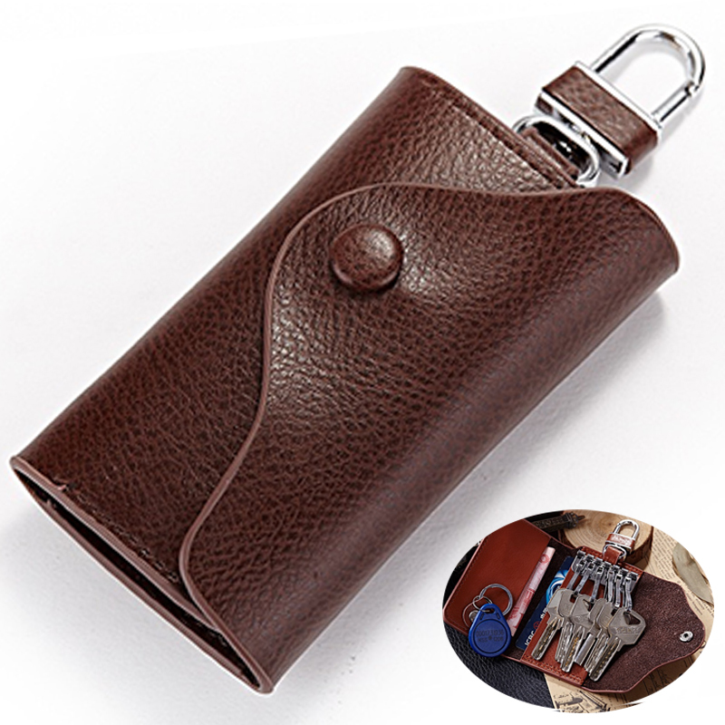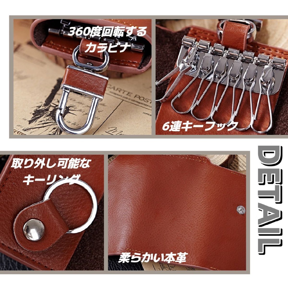 スマートキーケース 本革 カード収納 鍵入れ 車 キーホルダー 6連 男女兼用 コンパクト シンプル ダークブラウン