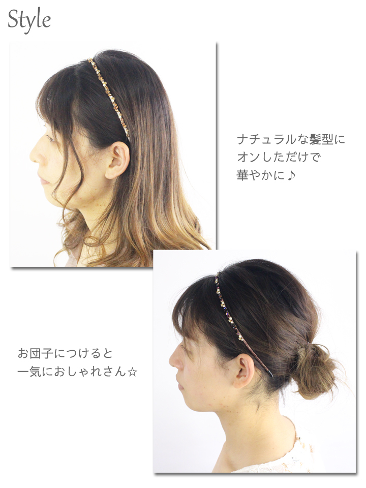 | 商品説明 | パール、ラインストーン、カラービーズがたっぷりの華やかカチューシャ。 カチューシャとしてデイリーアクセとして使ったり、 パーティーなどのアレンジヘアにONしたりと、幅広く使えるデザインです。 |