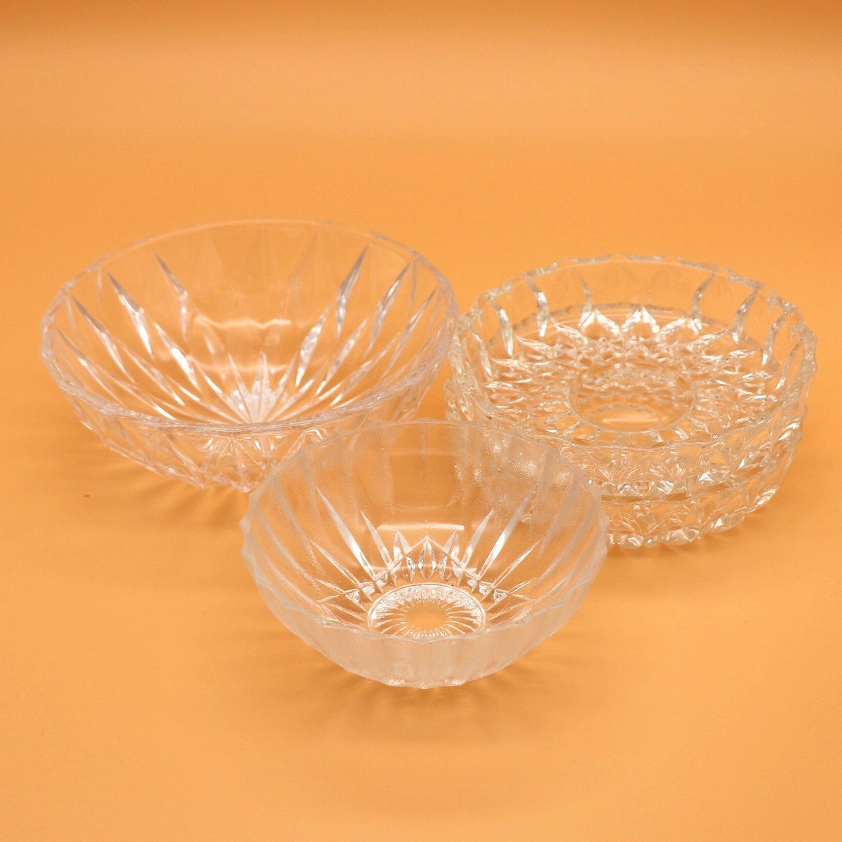 ガラスボウル①(直径:約160㎜、高さ:約58㎜)、ガラスボウル②(直径:約125㎜、高さ:約50㎜)、ガラス盛皿2枚(1枚当たり直径:約139㎜、高さ:約30㎜)、状態ランク:B
