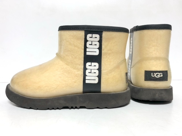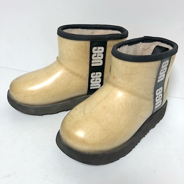 二点落札で送料無料! 2A48 UGG アグ クラシック クリア ミニ レインブーツ ムートンブーツ 18.5㎝ キッズ ジュニア ショートボア ベージュ