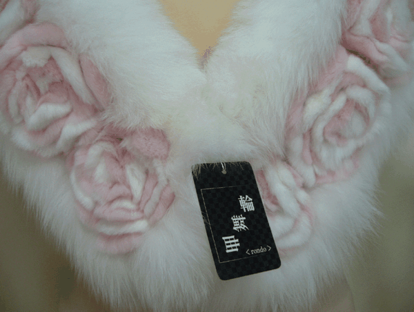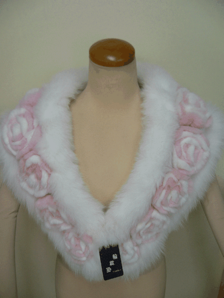 秀匠 ☆ 在庫品 超かわいい FOXショール 白地にピンク 07933