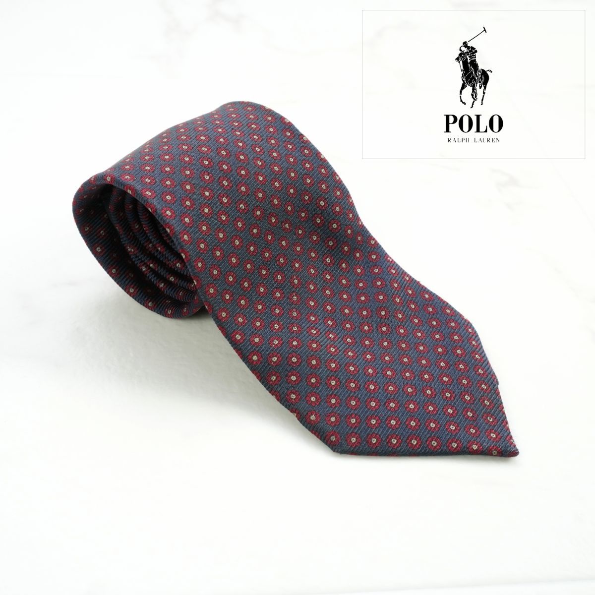POLO RALPH LAUREN ポロ ラルフ ローレン ネクタイ 総柄 シルク 紺系 ネイビー系@FG27
