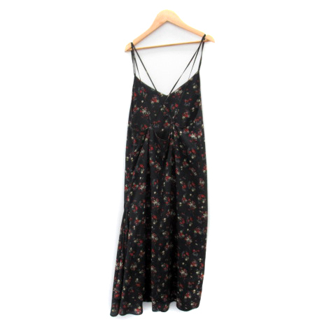 ロペピクニック ROPE Picnic キャミソールワンピース ロング丈 Vネック 花柄 マルチカラー 40 黒 ブラック /SY38 レディース