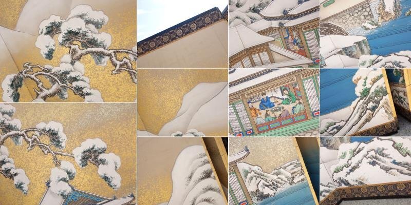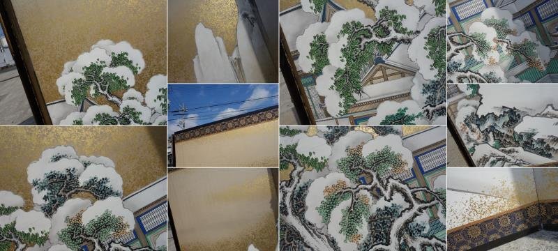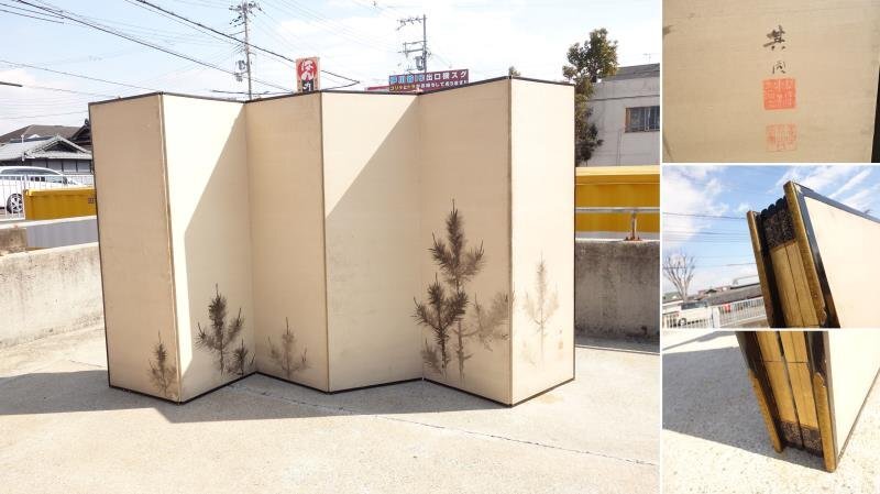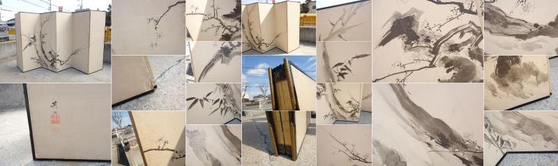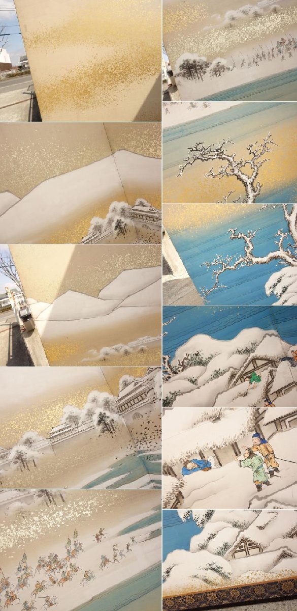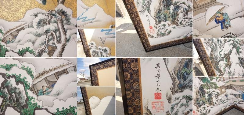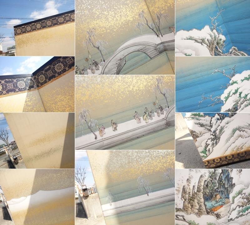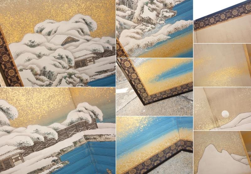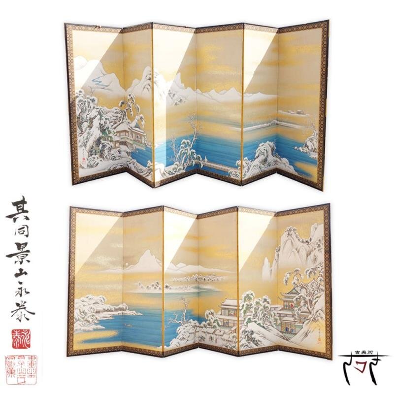 【中古】O▼狩野永泰其同 冷泉為恭 其同 屏風 六曲一双 六曲一隻 金欄屏風 水墨画 洛中洛外図 楼閣山水図 (30387)