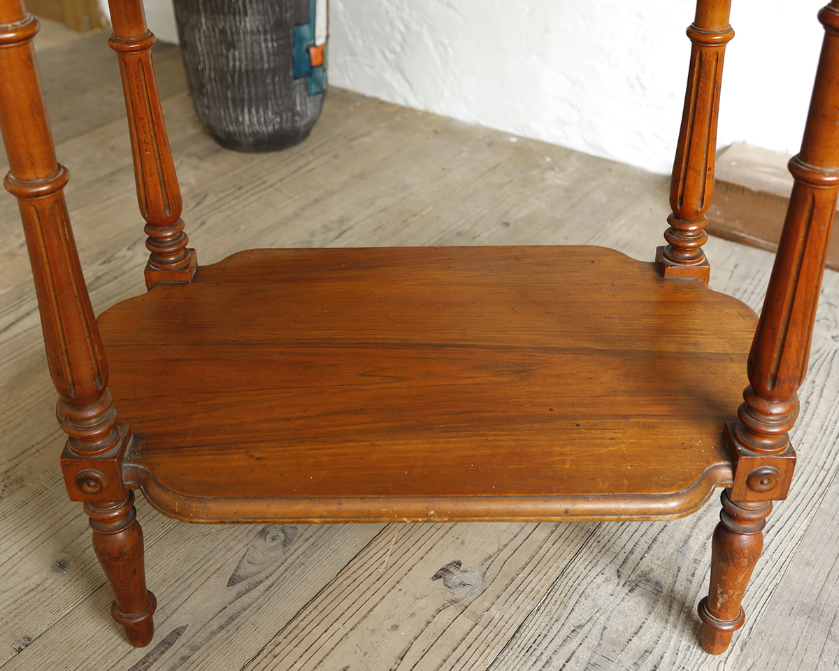 From : France フランスより届いた赤褐色を帯びた美しいお色味が気品高い姿のオケージョナルテーブル。 天板のエッジや脚部の彫刻など洗練された職人技がディテールに感じられ、高貴な佇まいでクラシカルな印象を纏い、置くだけで格式高い空間を演出しそうなひと品。 またマホガニーならではの妖艶できめ細やかな美しい木目は、思わず触れたくなるような魅力を引き立てます。 どこにおいても絵になる存在感でティーテーブルやデスク、飾り棚など様々な用途でご使用いただけます。 天板から棚板までの高さ:46cm 商品はアンティーク品のため、お写真では伝わり難い色褪せや小傷、歪み、ムシクイ跡などがございます。 追加のお写真をご希望の方はお気軽にお問合せくださいませ。