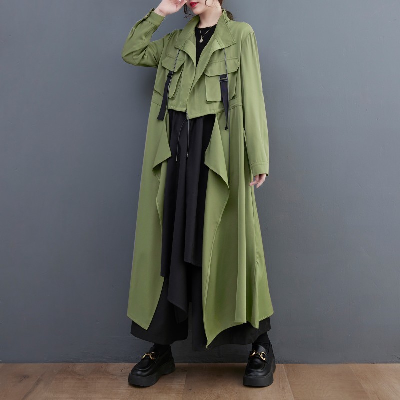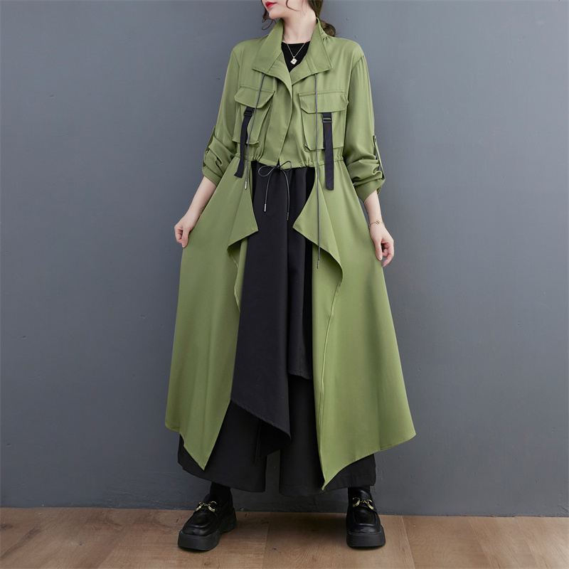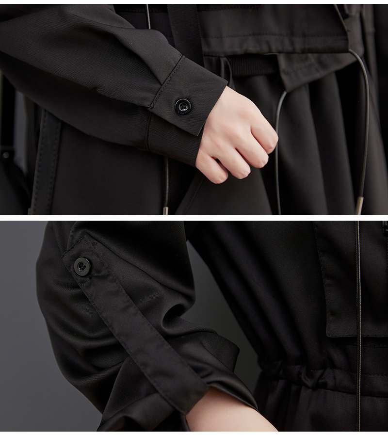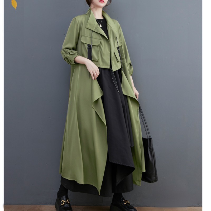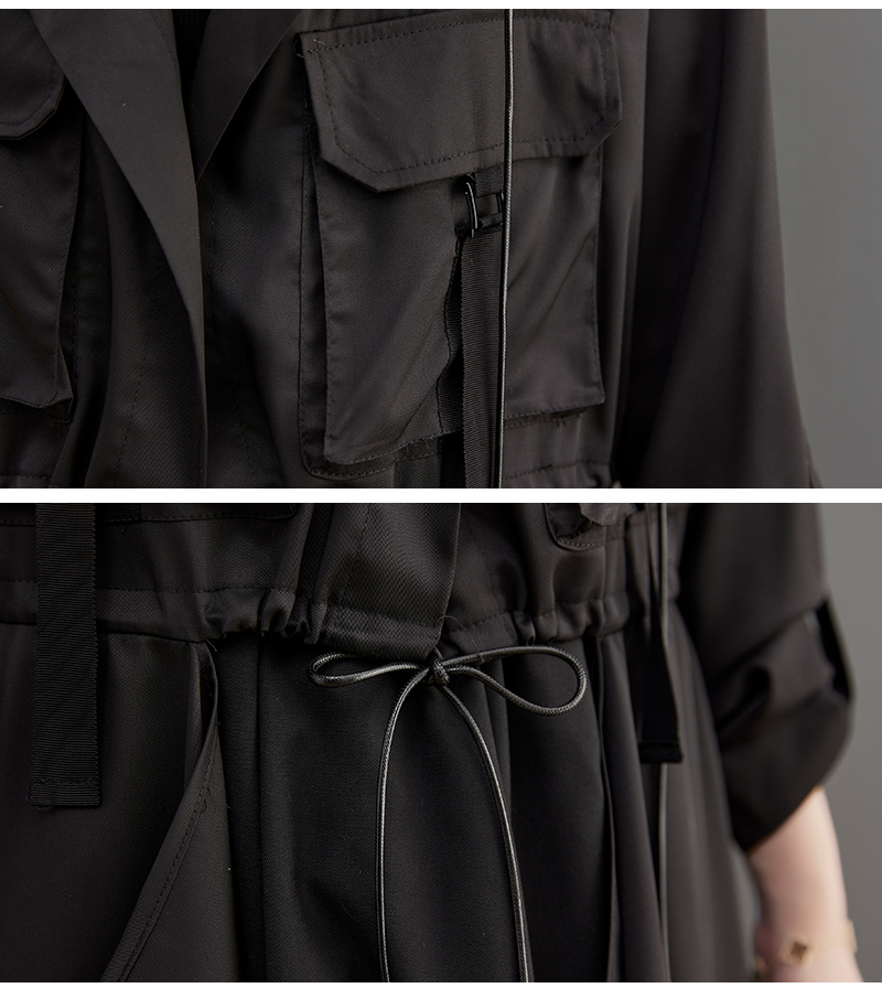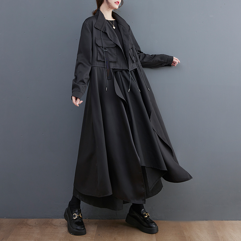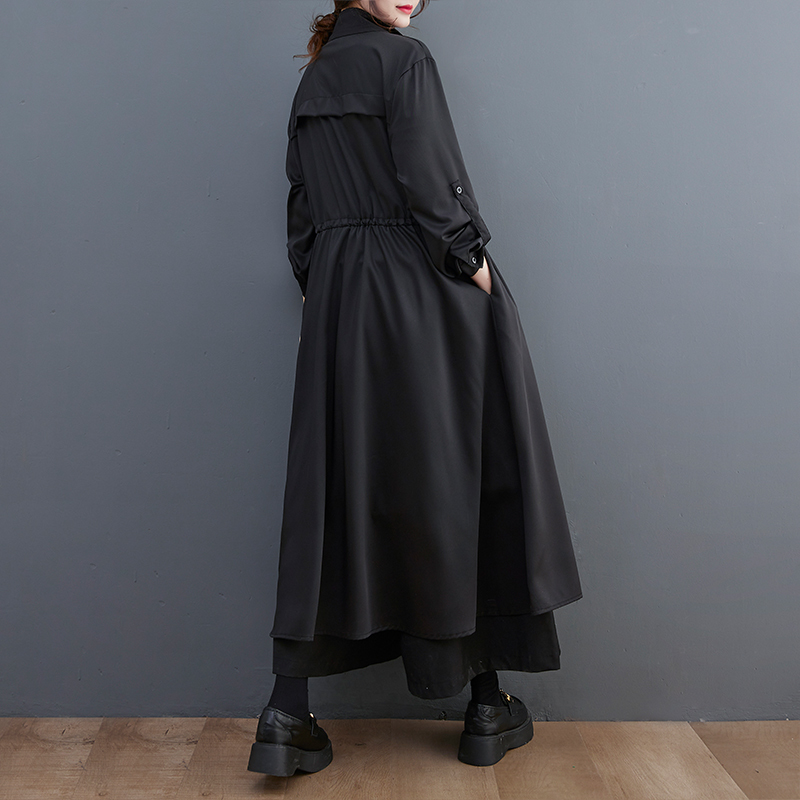 「同梱1万円送料無料」春*新作**レディース*カジュアル*ゆったり大きいサイズ*体型カバー*トレンチコートスプリングコート 黒
