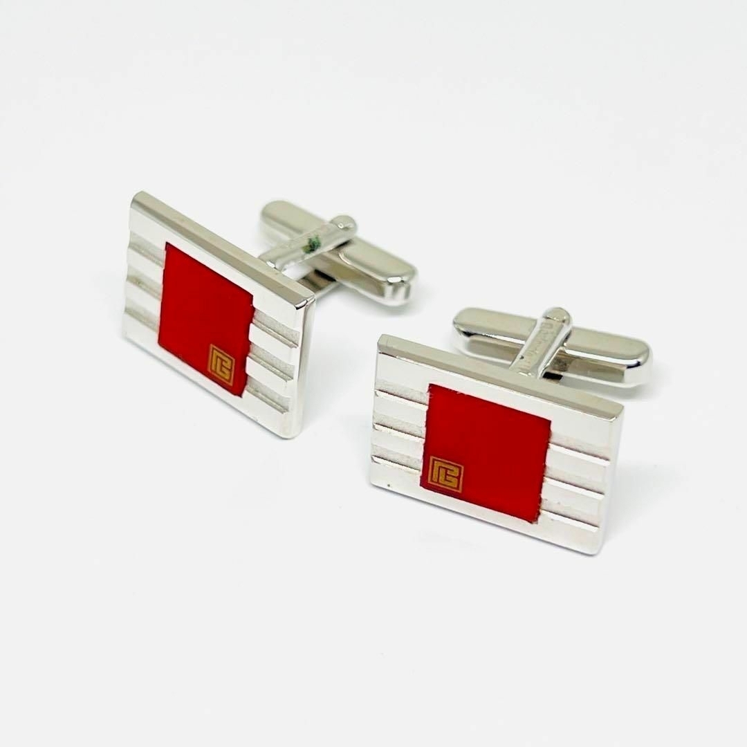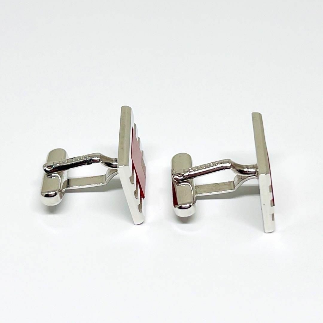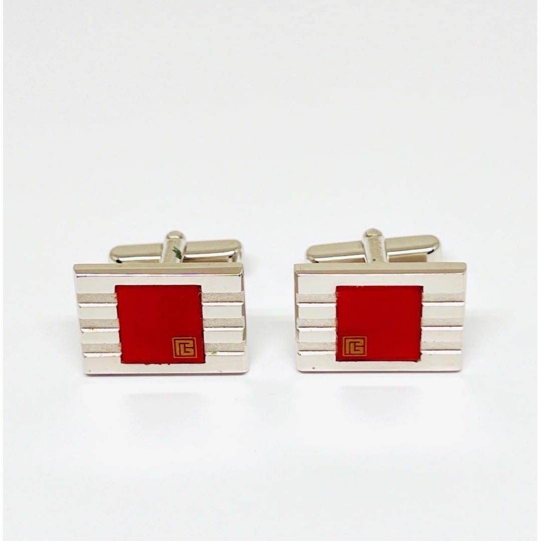 シルバー×レッドデザインがお洒落なカフリンクスとネクタイピンのセットです。