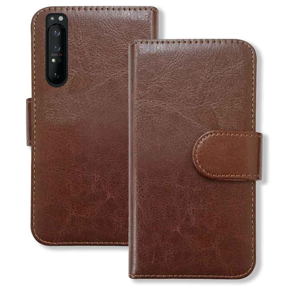 Xperia 1 II SO-51A SOG01 エクスペリア1II スマホケース(手帳ブラウン)手帳型 PUレザー 無地 ケース ダイアリータイプ 横開き カード収納 カバー
