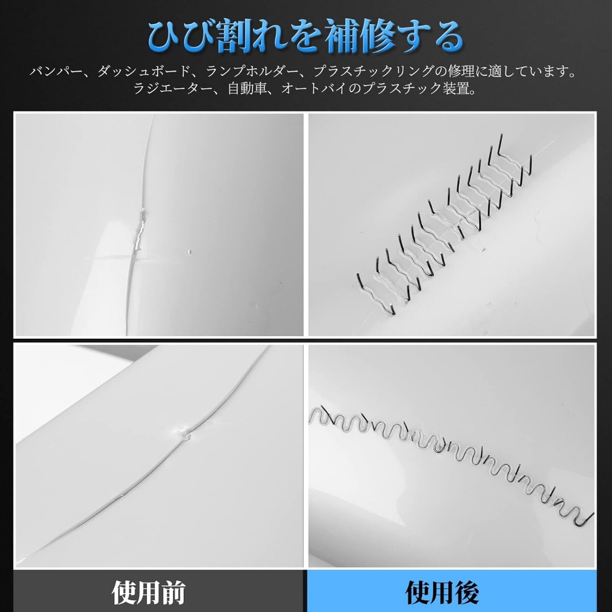 携帯用のはんだごてプラスチックメンテナンスハンダキット、バンパーメンテナンスキットは4種類タイプのホッチピンが付属しています。 波形のホッチキスは、負荷を最小限に抑えます。 ダメージのパーツを修復し、寿命を延ばします。 素早く簡単にピンをプラスチックに溶接します。 リフォーム後の衝撃とねじれにも強い。