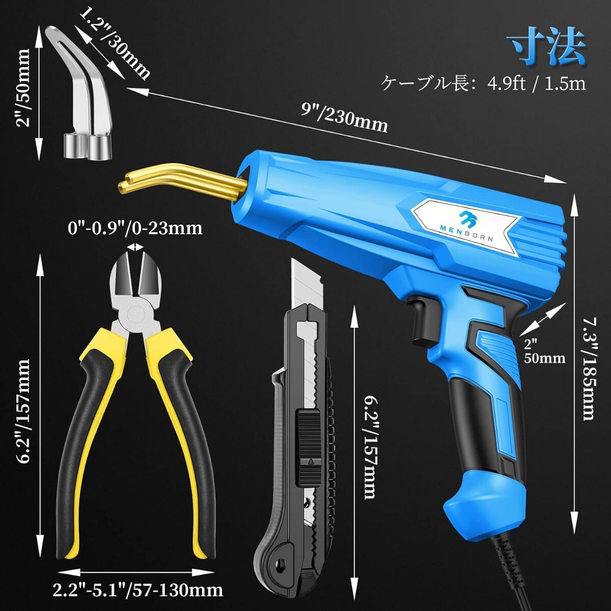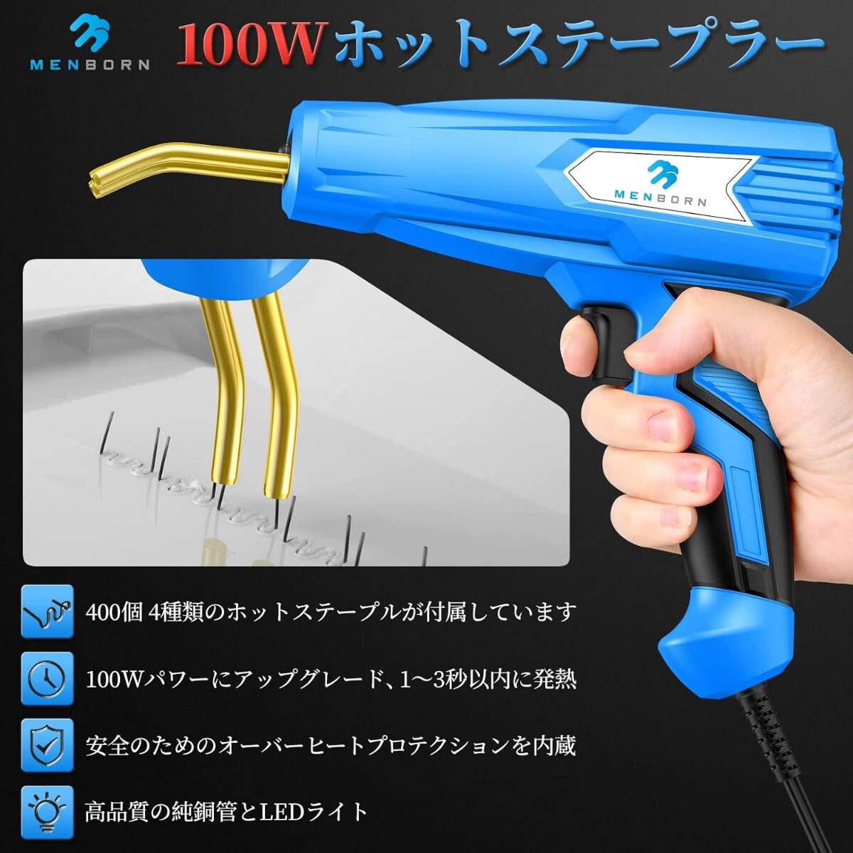 Menbornプラスチック溶接機アップグレードされた100wホットホッチキス プラスチック溶接マシン自動車バンパー修理キット、プライヤー、ナイフ、平頭/外角/内角/波釘、溶接修理機、ブルー…