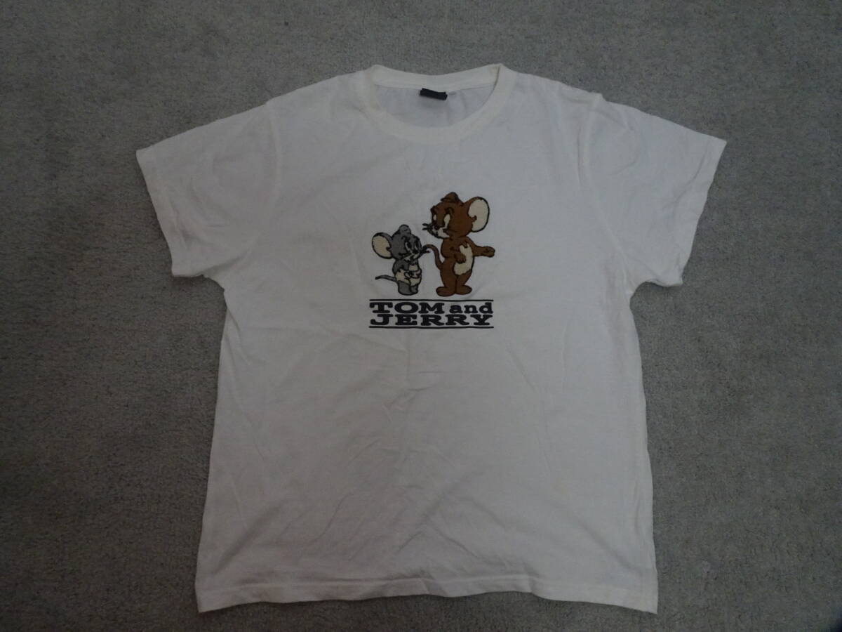 トムとジェリー Tシャツ Lサイズ です。 中古になります。1ヵ所シミがありました。 見逃した汚れ等あるかもしれません。 白なので漂白で白くなると思います。 【サイズ】Lサイズ 平置き測定 胸囲 約56cm 肩幅 約45cm 着丈 約66cm 素人測定ですので、誤差はご了承下さい。 小さな傷や痛み、汚れの見落としや、未チェック箇所なども含め、 商品状態を100%お伝えする事が大変難しいので多少のご容赦お願いいたします。 |