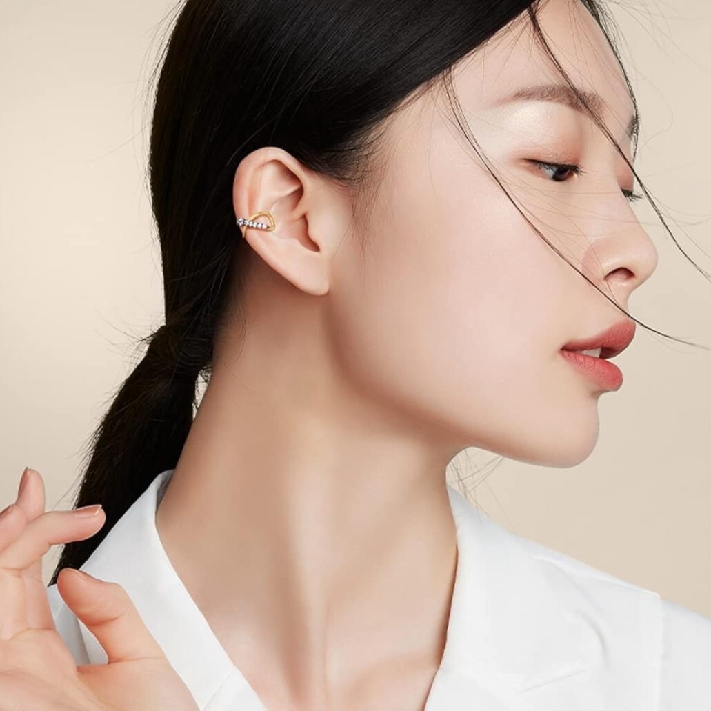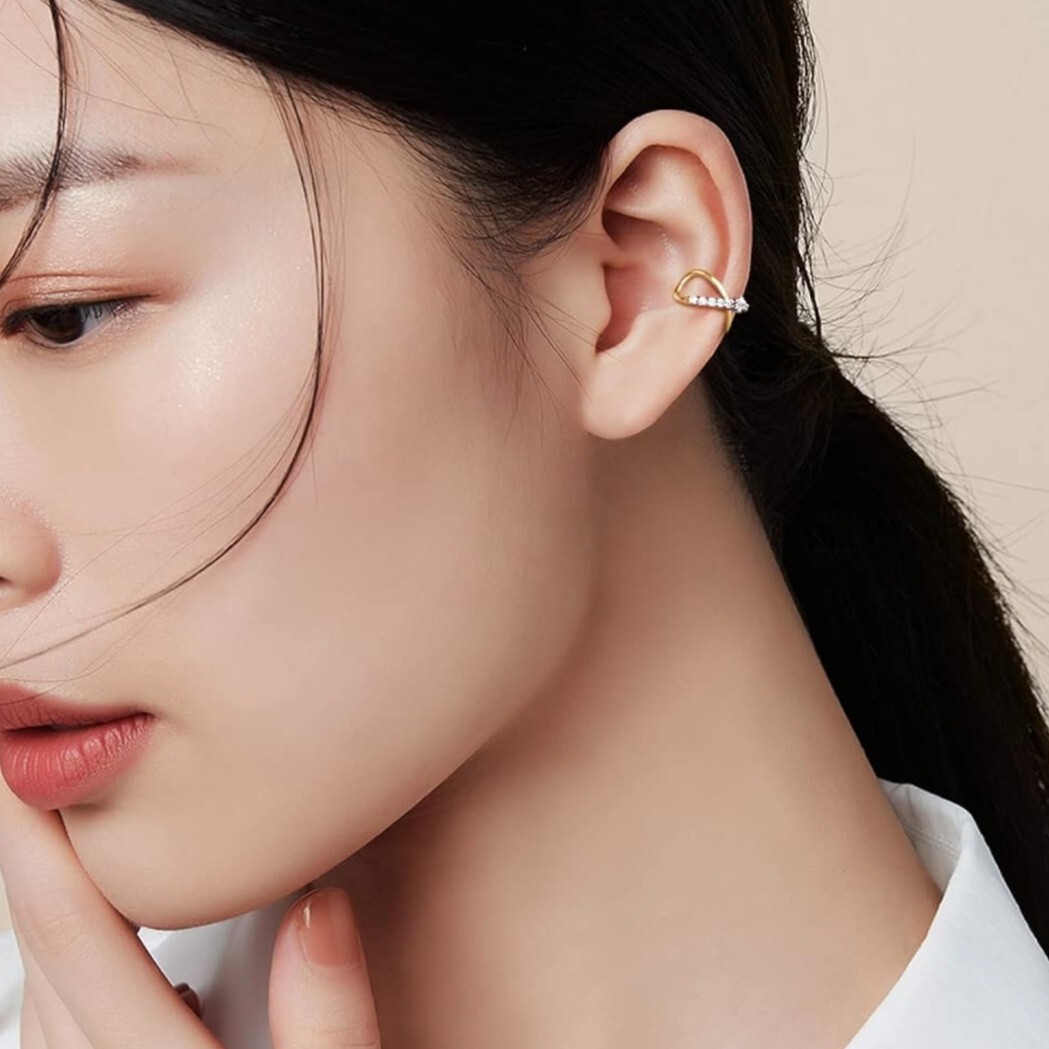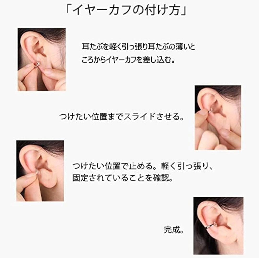 【装着しやすい】イヤーカフのサイズは微調整も可能です。耳たぶや軟骨部分にそっと埋め込み、固定すれば手を緩めることができ。耳につけて、ゆるい場合は、指で押さえながらゆっくりと力を入れてイヤーカフを調整してください。きつすぎる場合は、レディースイヤーカフをサインペンの上に置いてサイズを調整します。フェイクピアスも他のイヤリングと気軽に合わせられます。