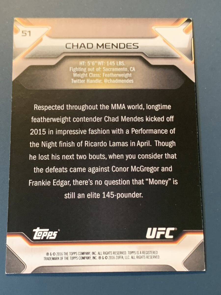 99枚限定 チャド・メンデス ゴールドパラレルレギュラーカード No.51 TOPPS UFC KNOCKOUT 2016