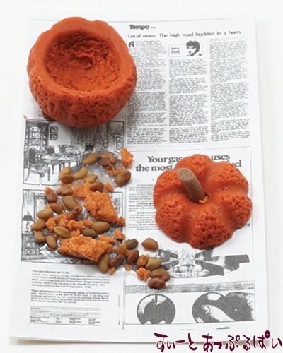 面白~い!ハロウィンに向けて、かぼちゃのくり抜き中ですね!机の上に置くだけで、臨場感出ちゃいますね!貴方のドールハウスに、ぜひお役立てくださいね!※新聞の柄は、個体ごとに異なります。※種などの位置は、個体ごとに異なります。※アメリカ製のため、輸送により一部の種などが紙からはがれてしまっている場合がありますが、戻す位置等はご自身でアレンジできる方が良いと思われるため、そのままお送りさせていただきますのでご了承ください。接着は白色ボンドで大丈夫です。メーカー:マルチミニ(米国)。新聞紙のサイズ 50x33ミリ。かぼちゃの直径約14ミリ(手作りのため、個体差があります)