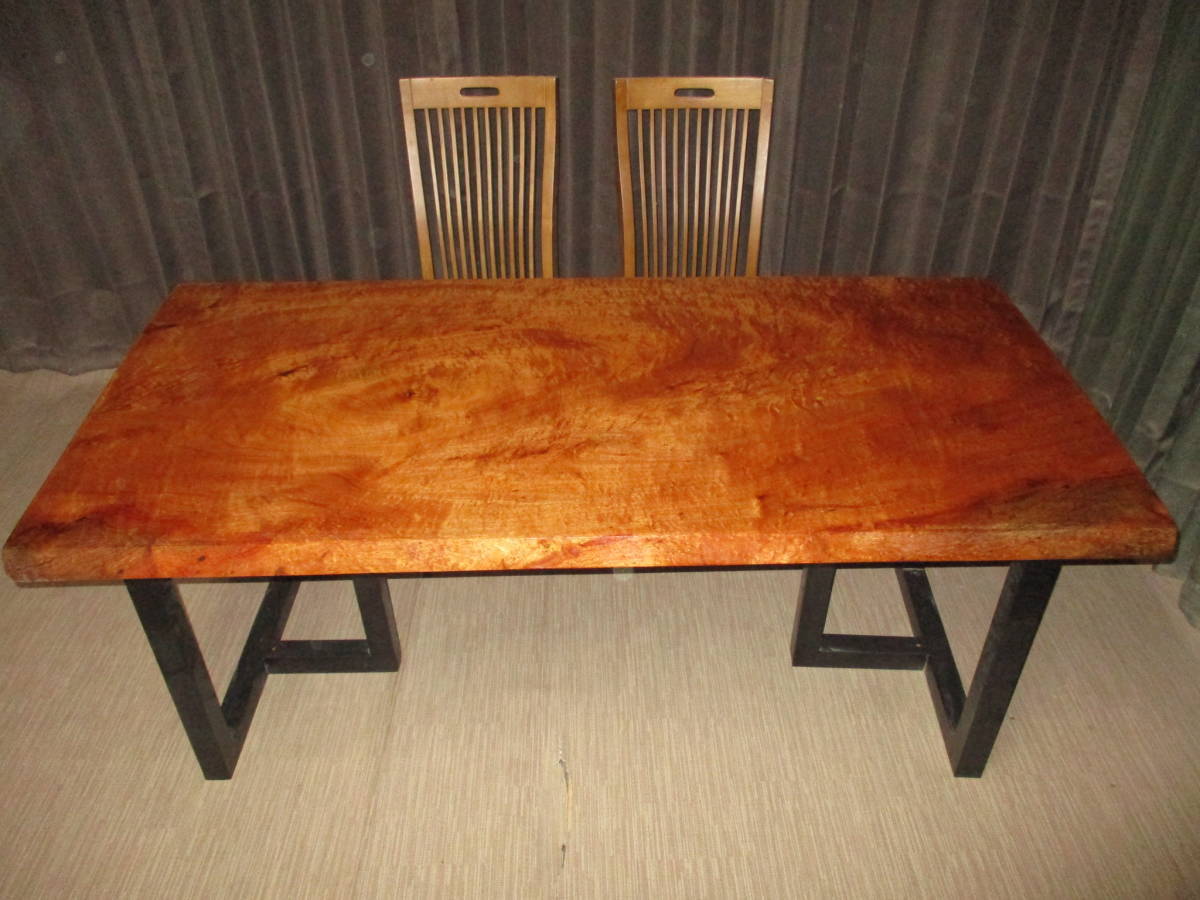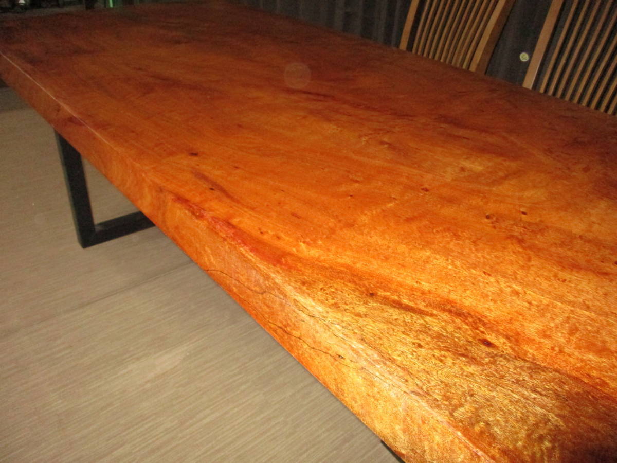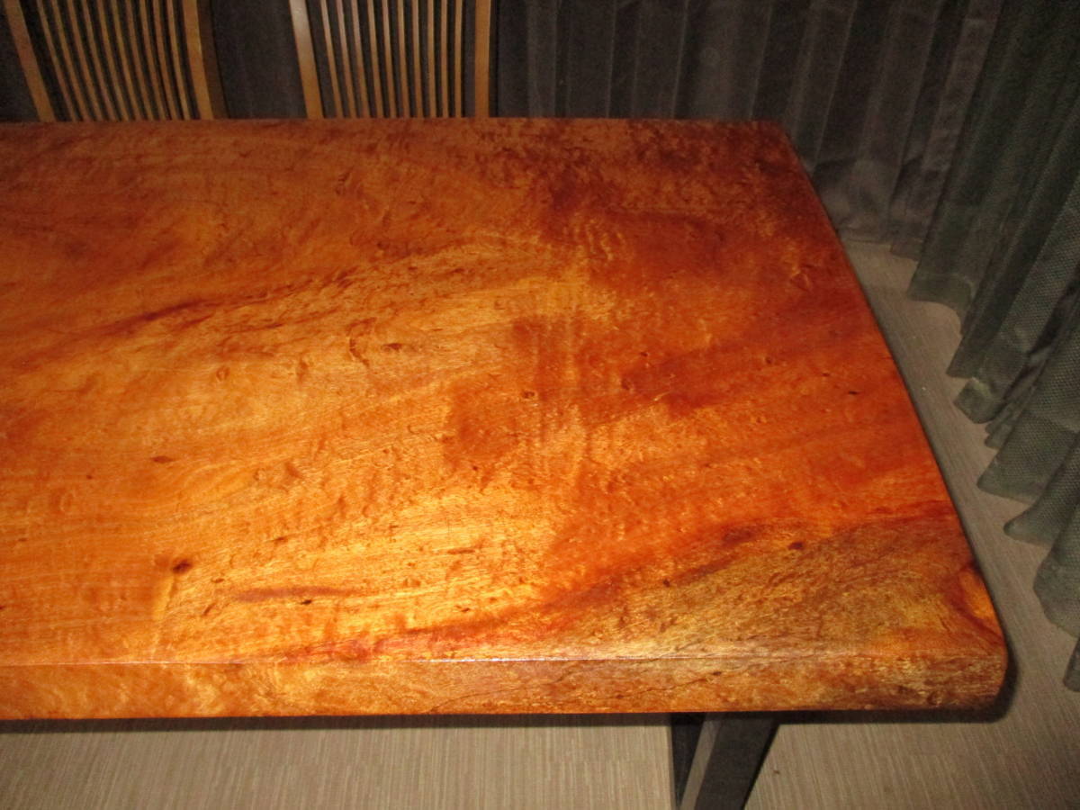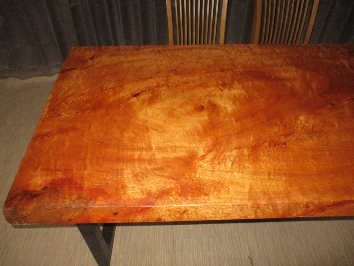 椨の一枚板無垢のテーブルです。人気商品です。全体的に光杢が輝いています。また、長方形で、使い勝手があります。これから最終仕上げに入ります。よりきれいになります。