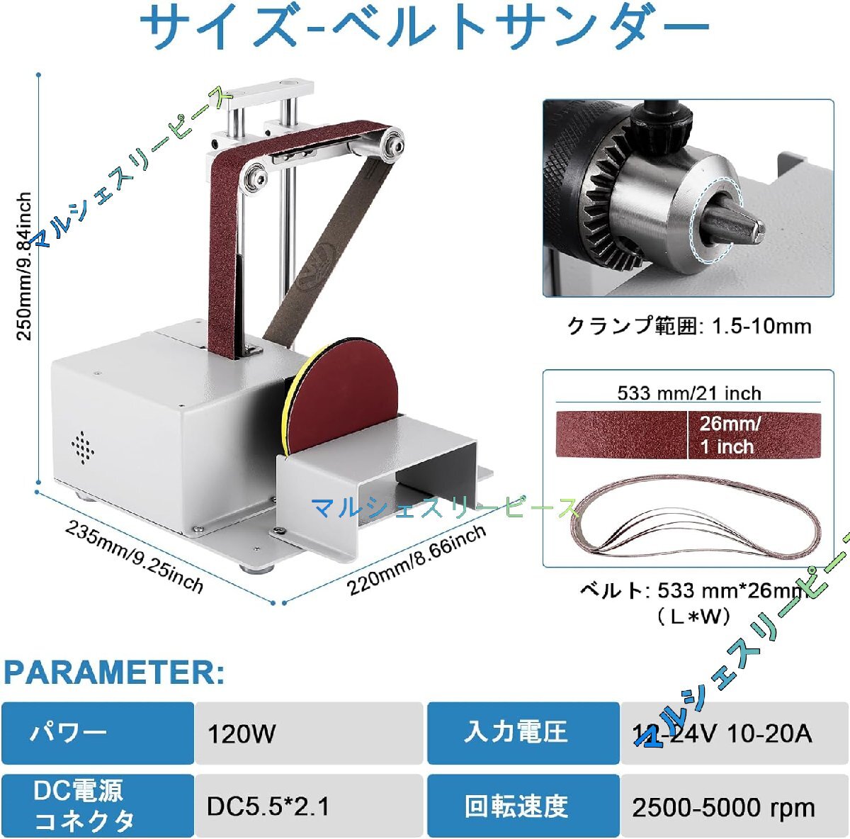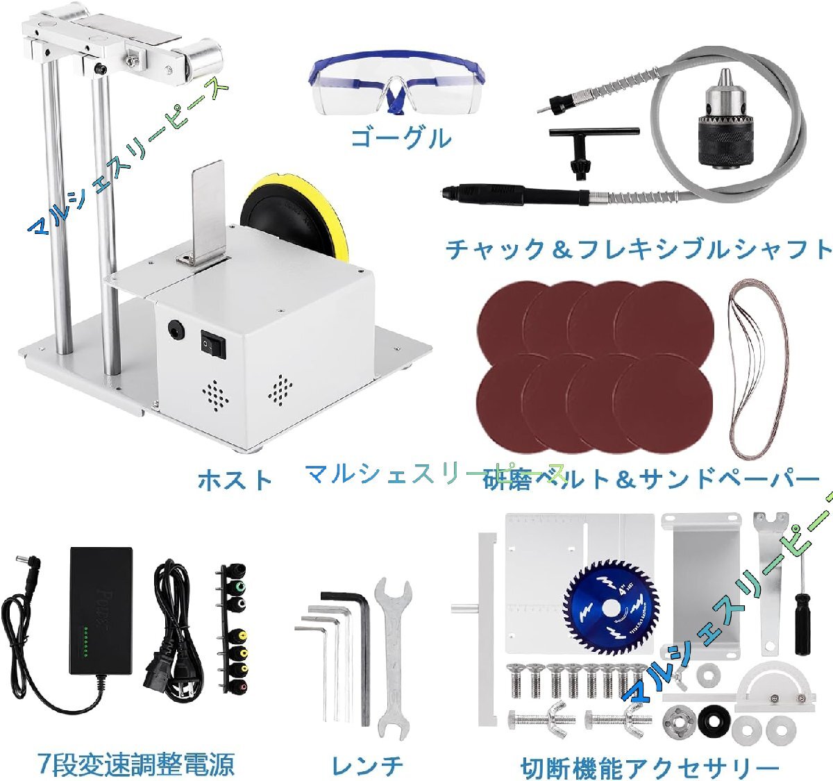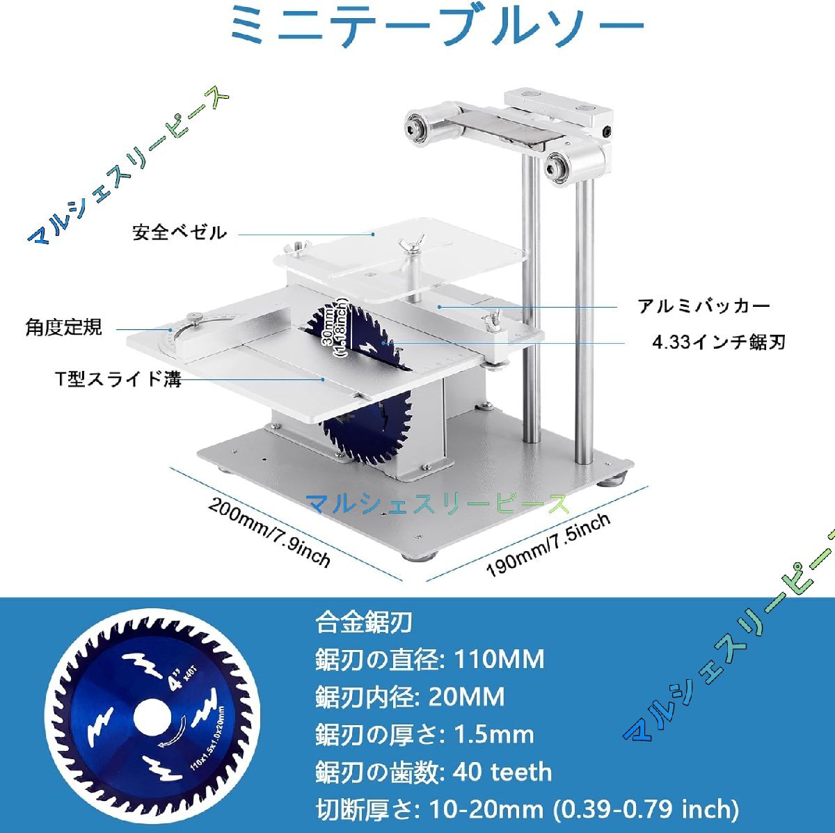 電動ベルトサンダー多機能 小型 丸鋸盤 テーブルソー 10-20mm切断 120W木材加工チップソー DIY研磨/研削/切断/穴あけ 2500-5000rpm 110V