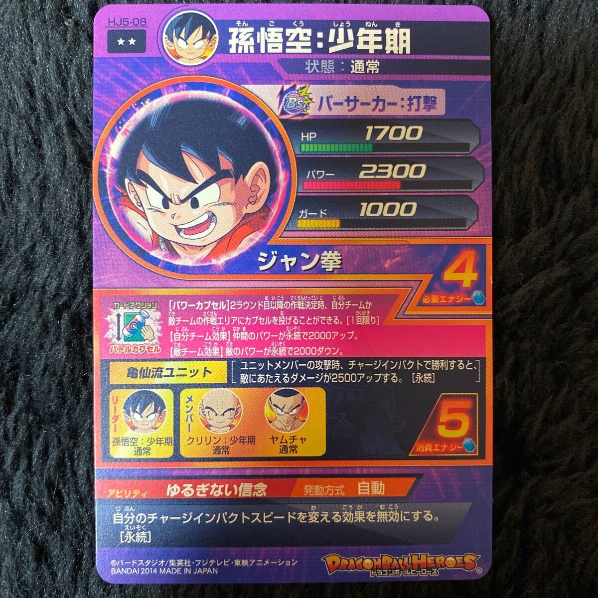 HJ5弾レア/ 孫悟空:少年期(通常)/ HJ5-08 /技:ジャン拳 /ドラゴンボールヒーローズ/ レアリティ:☆☆/ 2014 BANDAI