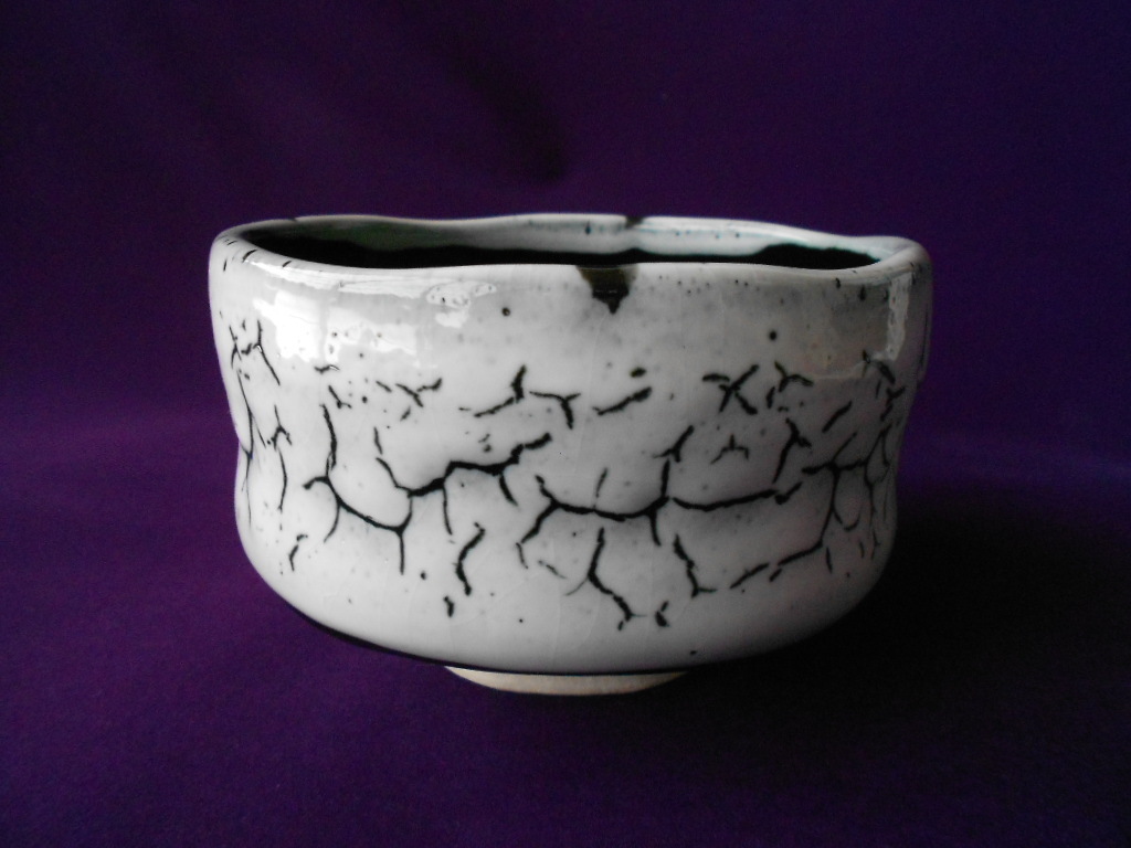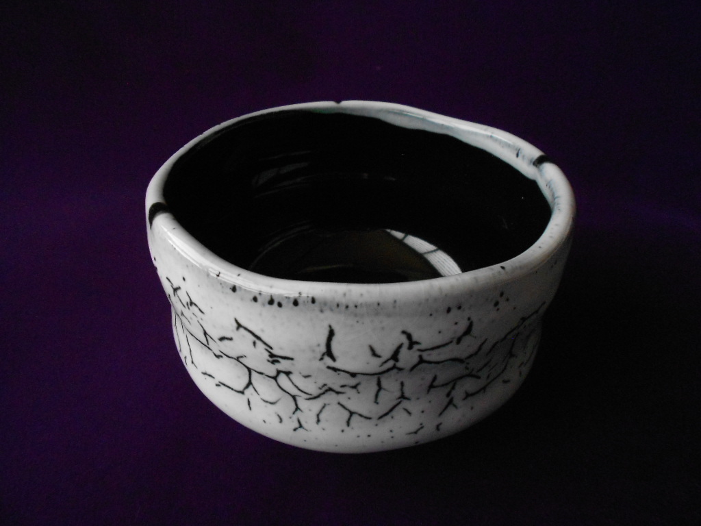 美濃焼! 西庵窯 ☆白黒荒貫入抹茶碗☆ V3044-5 茶道具 新品 茶器 ギフト