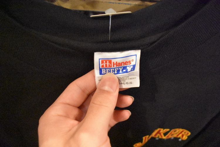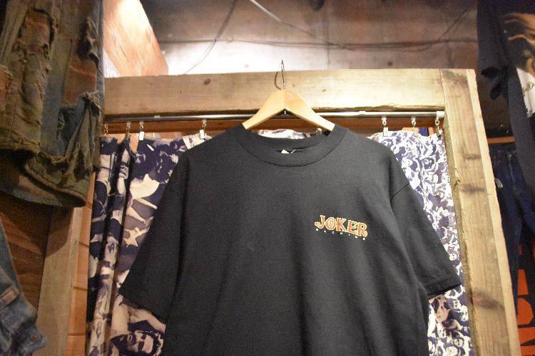 デッドストック◎90sビンテージHanesヘインズJOKERジョーカープリントTシャツ黒ブラックLオールコットンアメカジストリートn2491