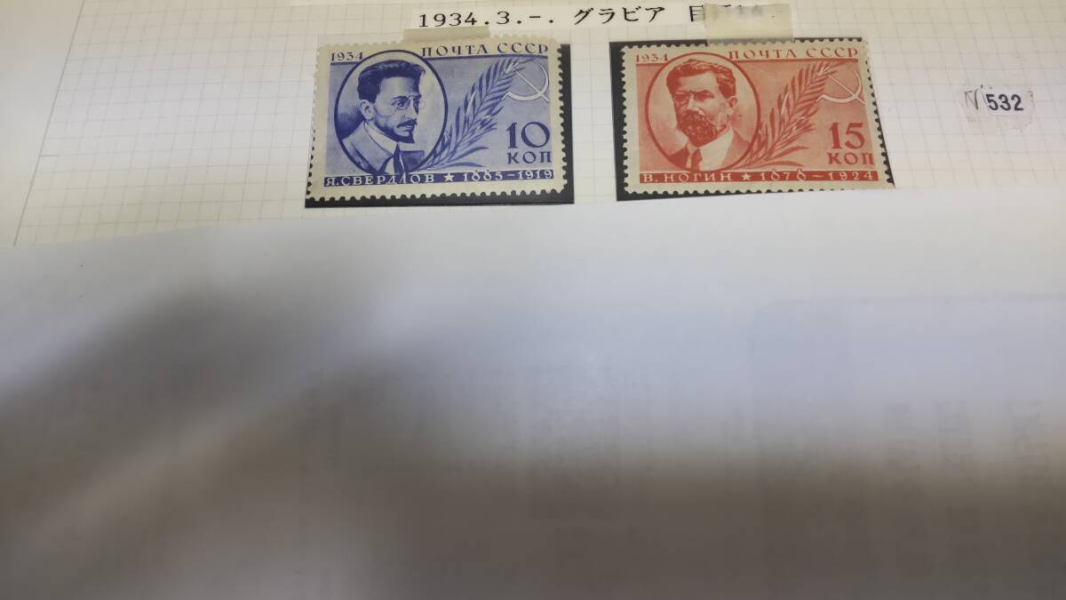 帝政ロシア、ソ連切手専門他にも出品中☆1934年☆Scott#531、532☆未使用2枚☆Scott価格US$227.50