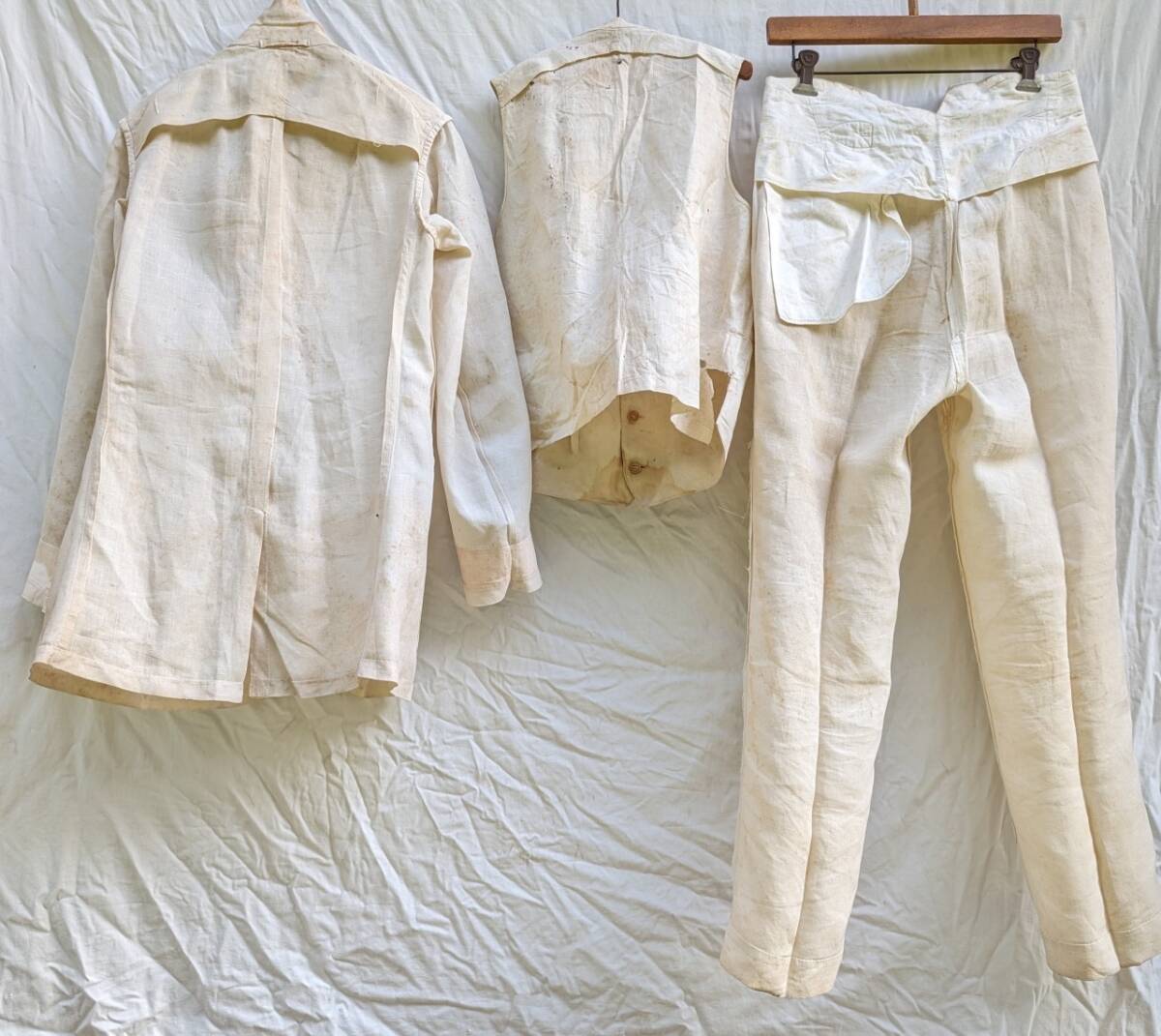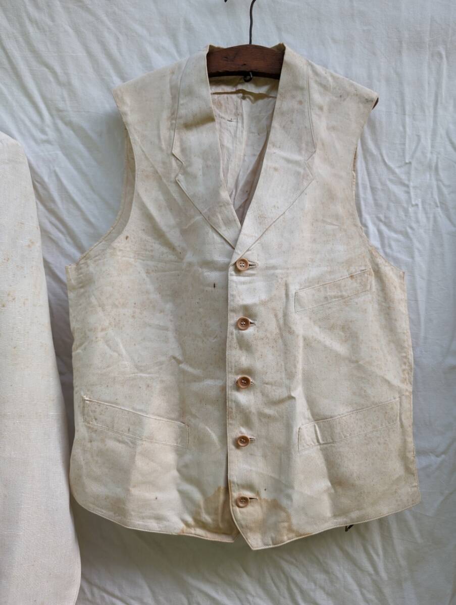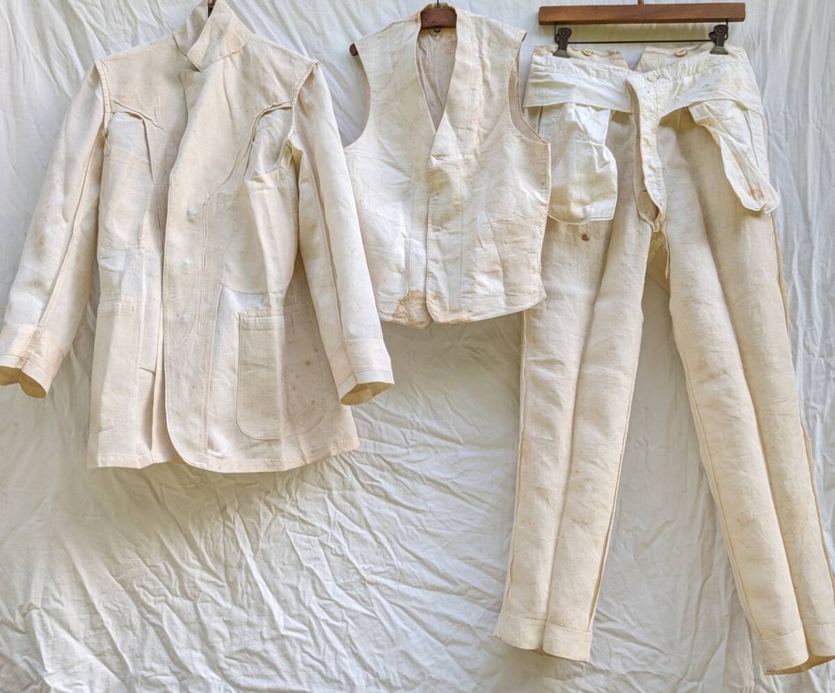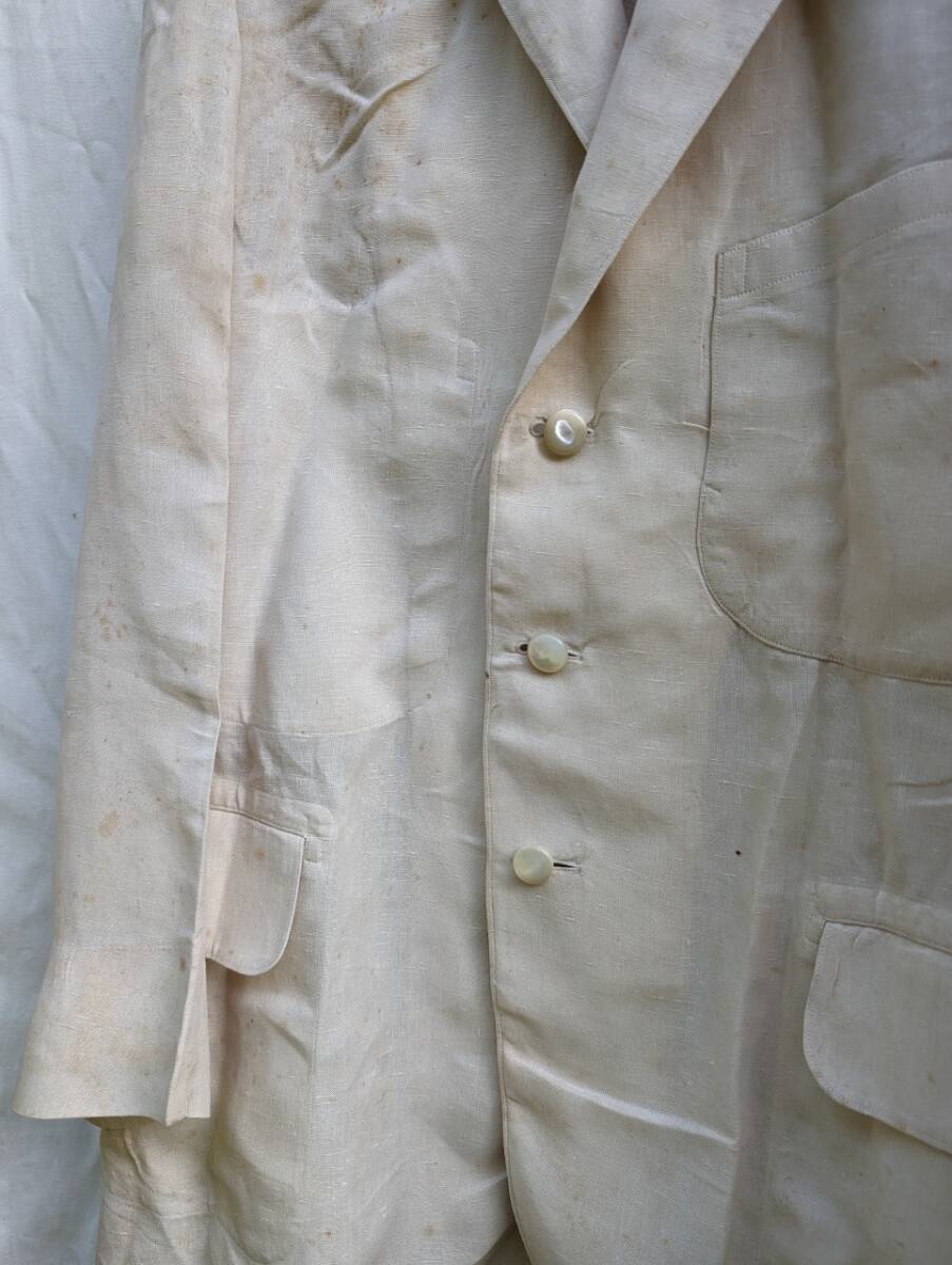 海軍? 旧日本軍? 麻 3ピース ジャケット ジレ パンツ チェンジボタン 針シンチ SOLIDE ジャパンヴィンテージ JAPAN VINTAGE 20s30s