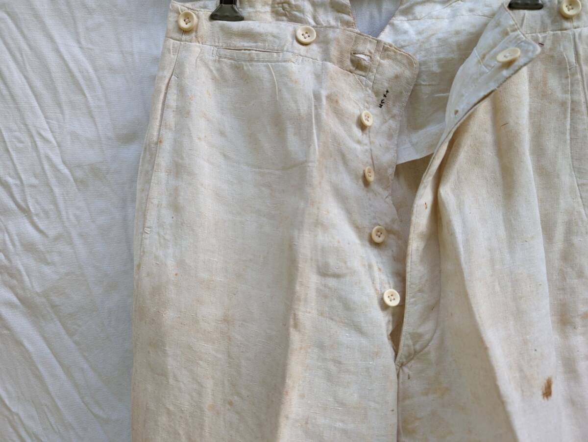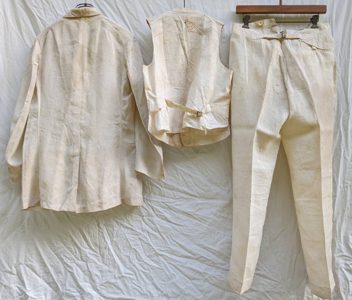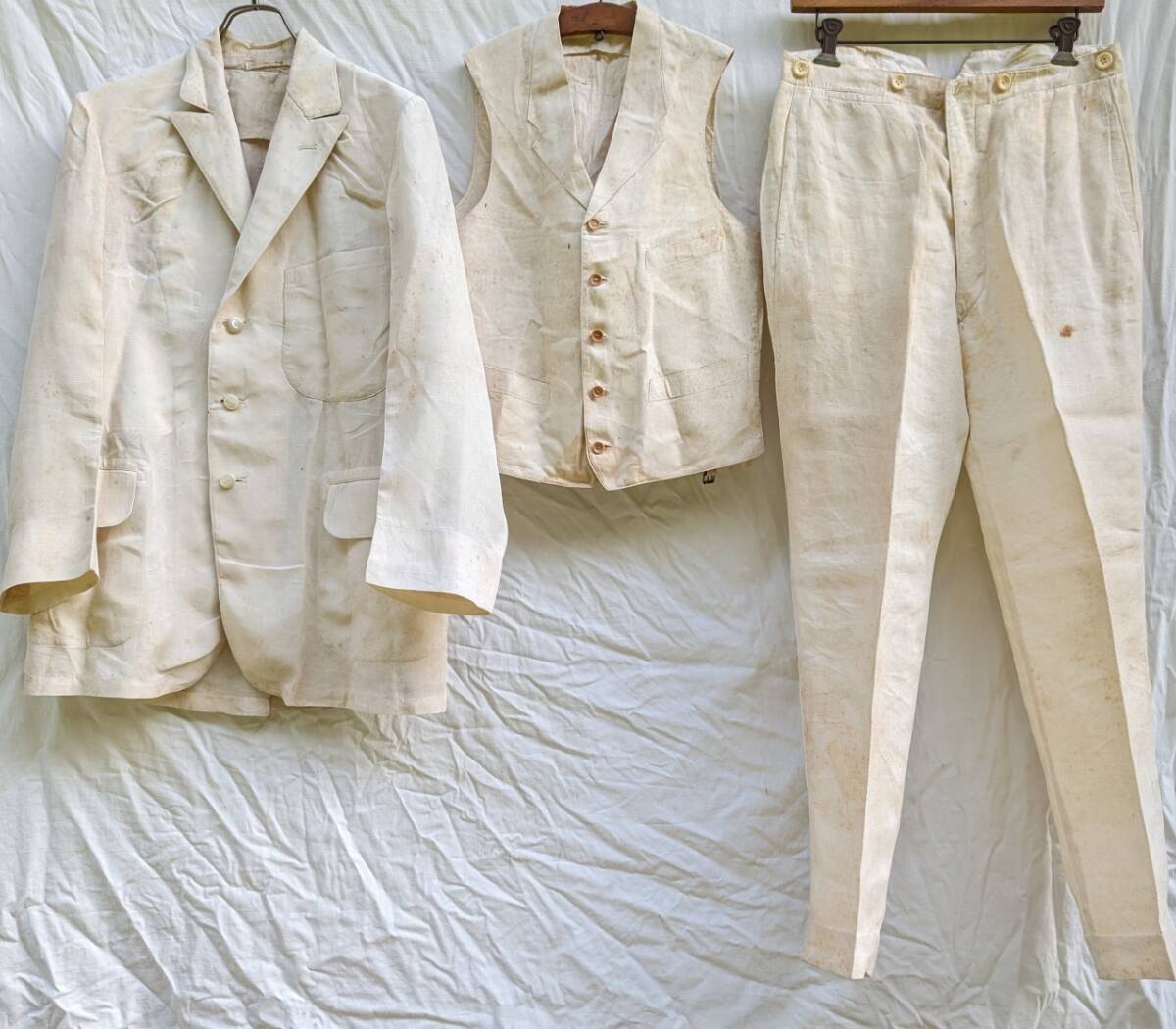 海軍? 旧日本軍? 麻 3ピース ジャケット ジレ パンツ チェンジボタン 針シンチ SOLIDE ジャパンヴィンテージ JAPAN VINTAGE 20s30s